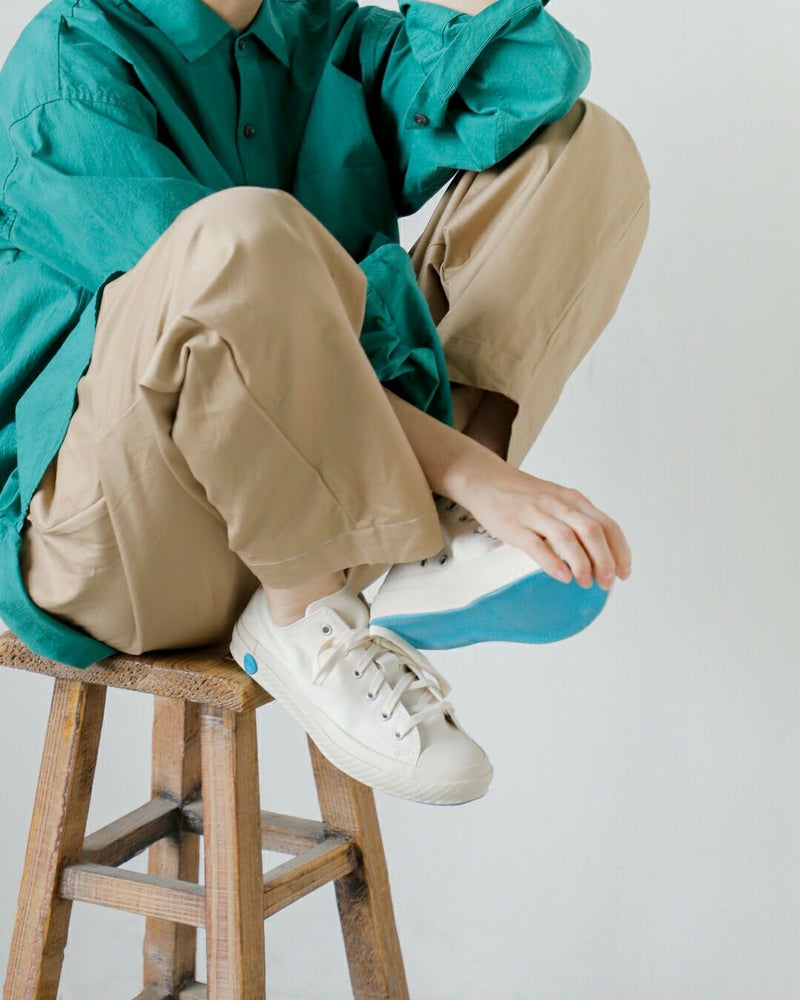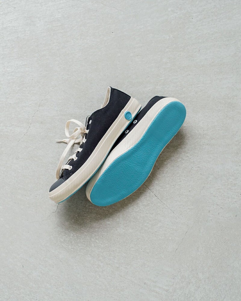 弾力のあるラバーソールが地面からの衝撃をしっかり吸収します。歩くたびにブルーが覗き、さりげないアクセントに。