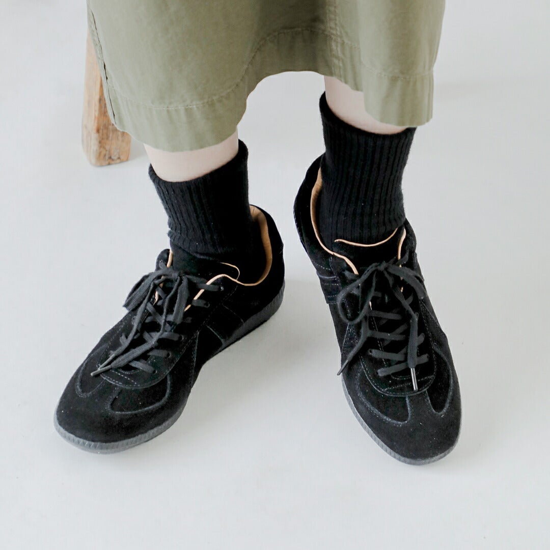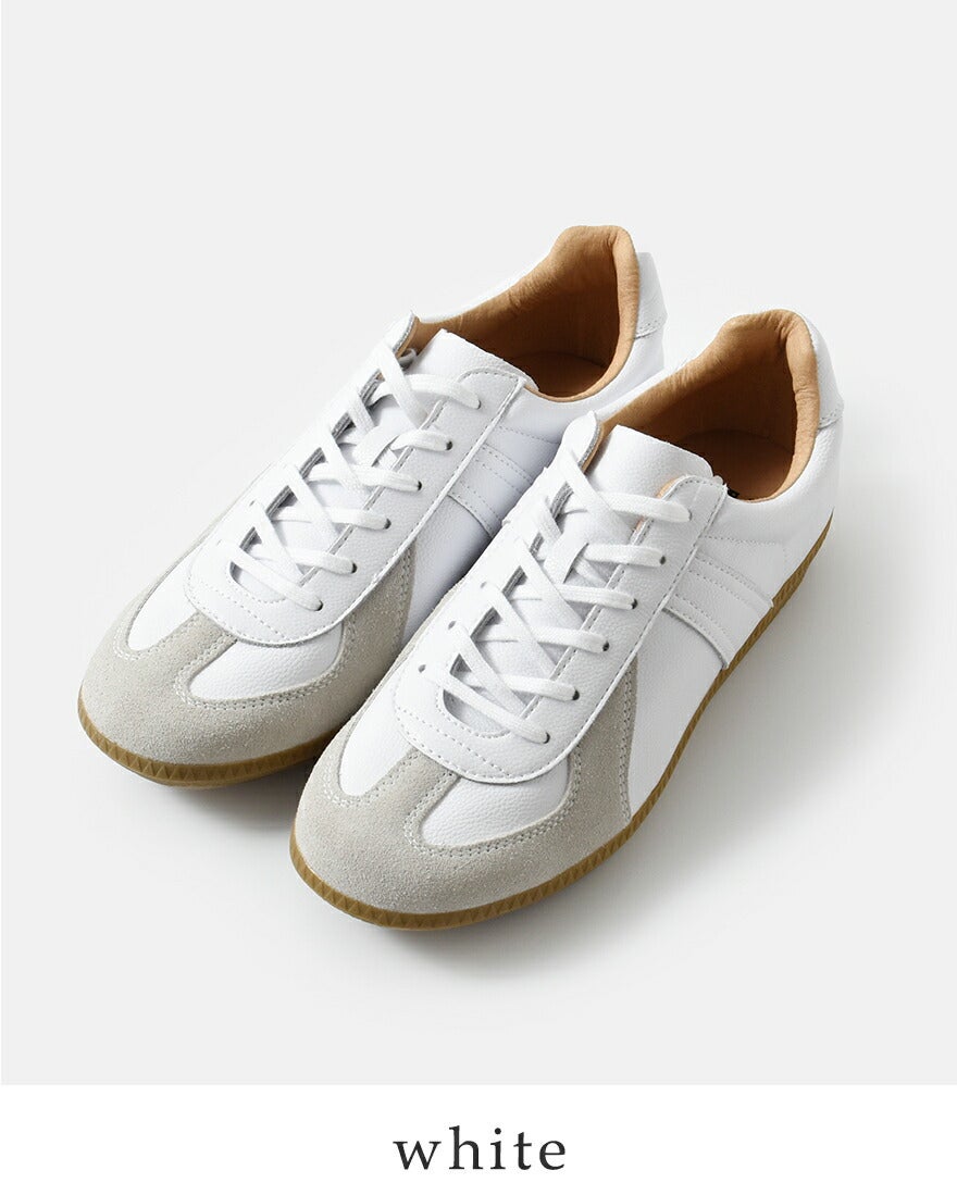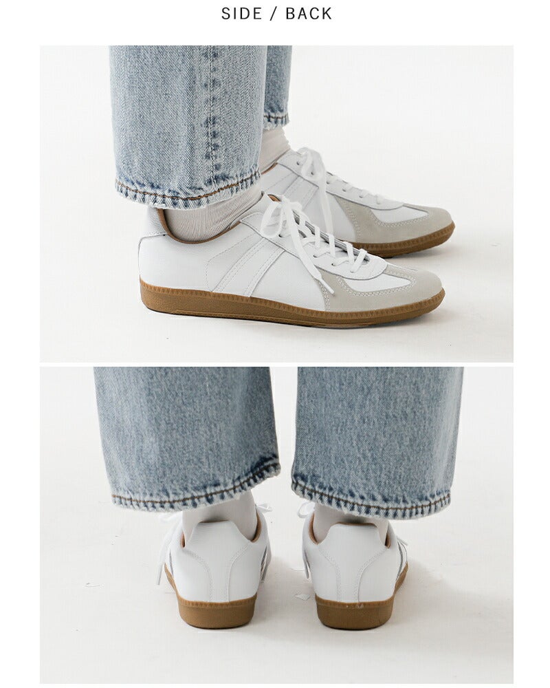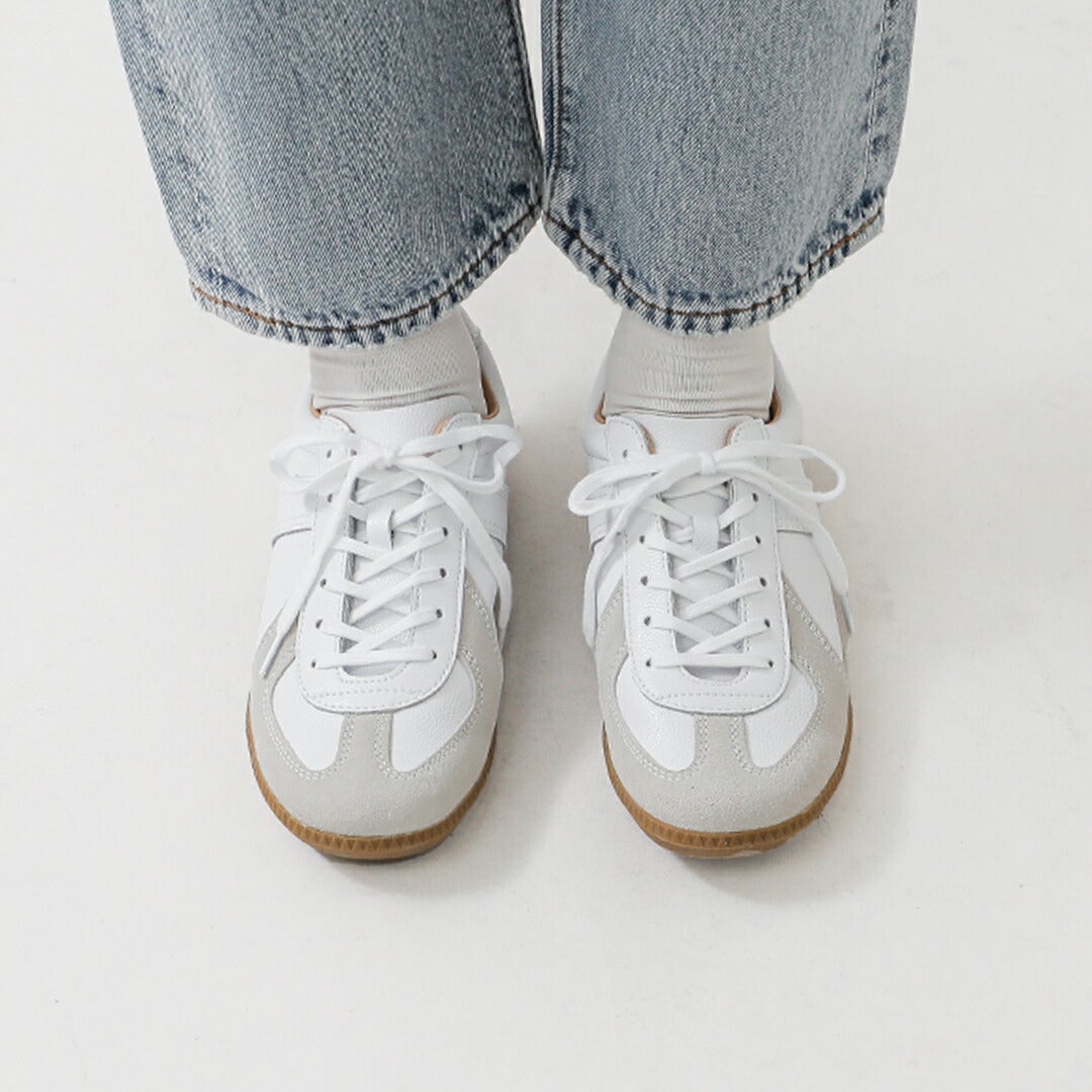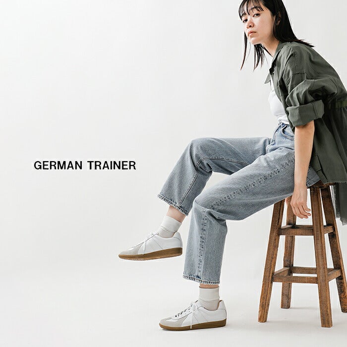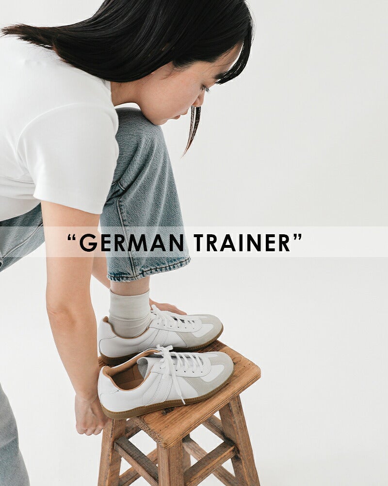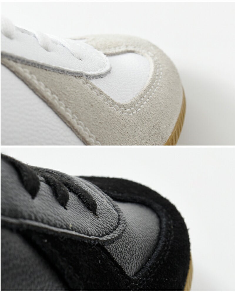 シンプルな色使いとミニマルなデザインで幅広い世代から支持されるキングオブミリタリーレザースニーカー ジャーマントレーナー GERMAN TRAINER アクションレザー×スエード ローカット スニーカー “REPRODUCTED EDITION MODEL” 42500 レディース 2026ss新作 春夏 靴 シューズ ミリタリー 白 黒 ドイツ軍【サイズ交換初回無料】
