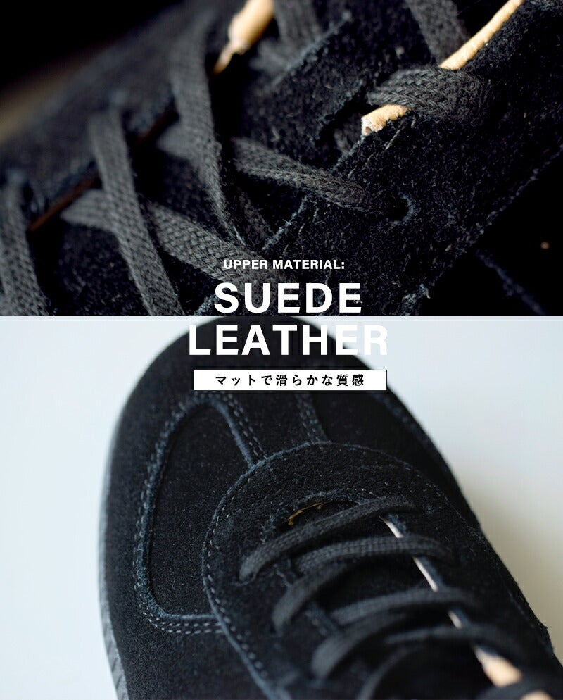 きれいめにもカジュアルに似合う シンプルデザインのオールブラックスエードのスニーカー ジャーマントレーナー GERMAN TRAINER スエード ローカット スニーカー “REPRODUCTED EDITION MODEL” 42104 ユニセックス 2026ss新作 春夏2025aw新作 【サイズ交換初回無料】