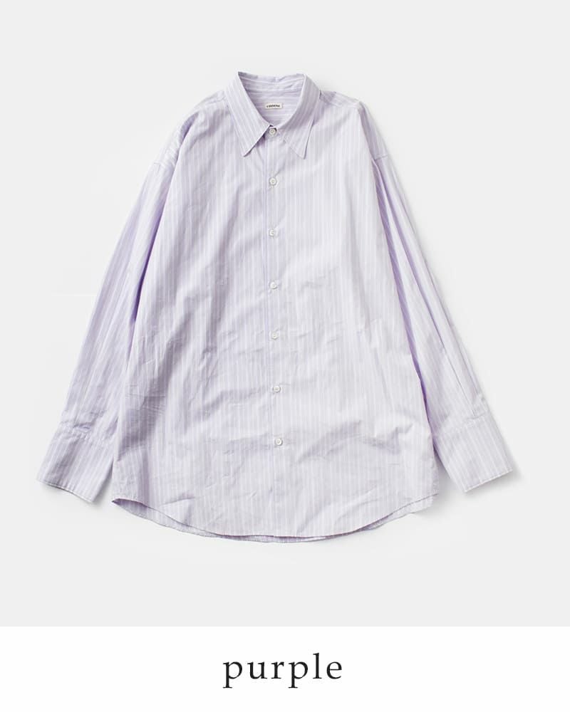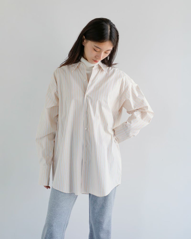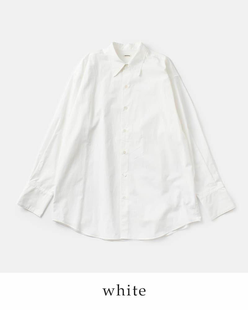 オーバーサイズでありながらも、全体のバランスが取れており、だらしなく見えない絶妙な設計。背筋を正すジャストサイズなシャツではなく、Tシャツや下着を着るような心づもりで着るシャツです。