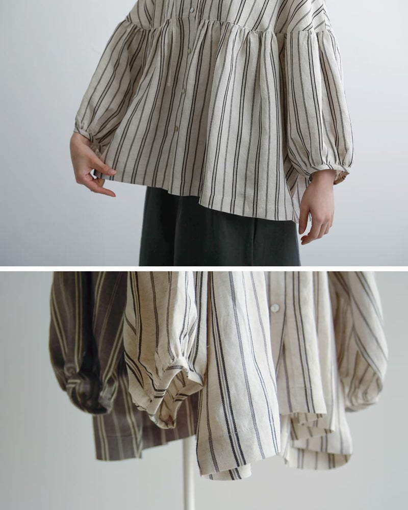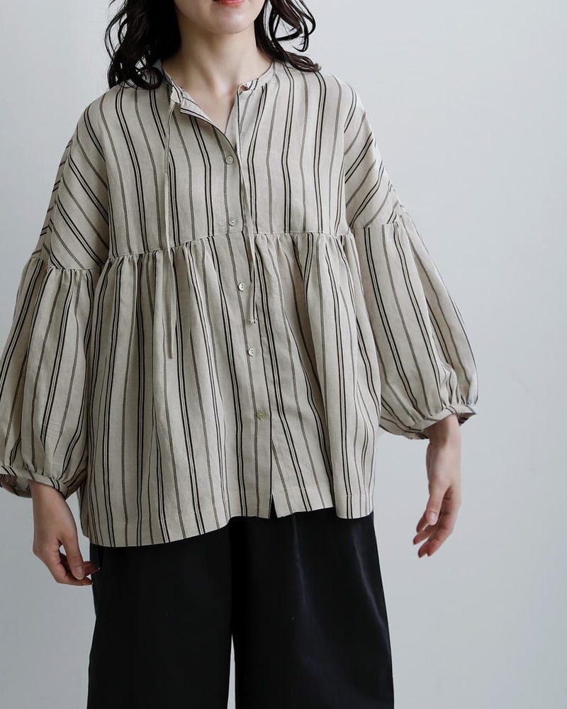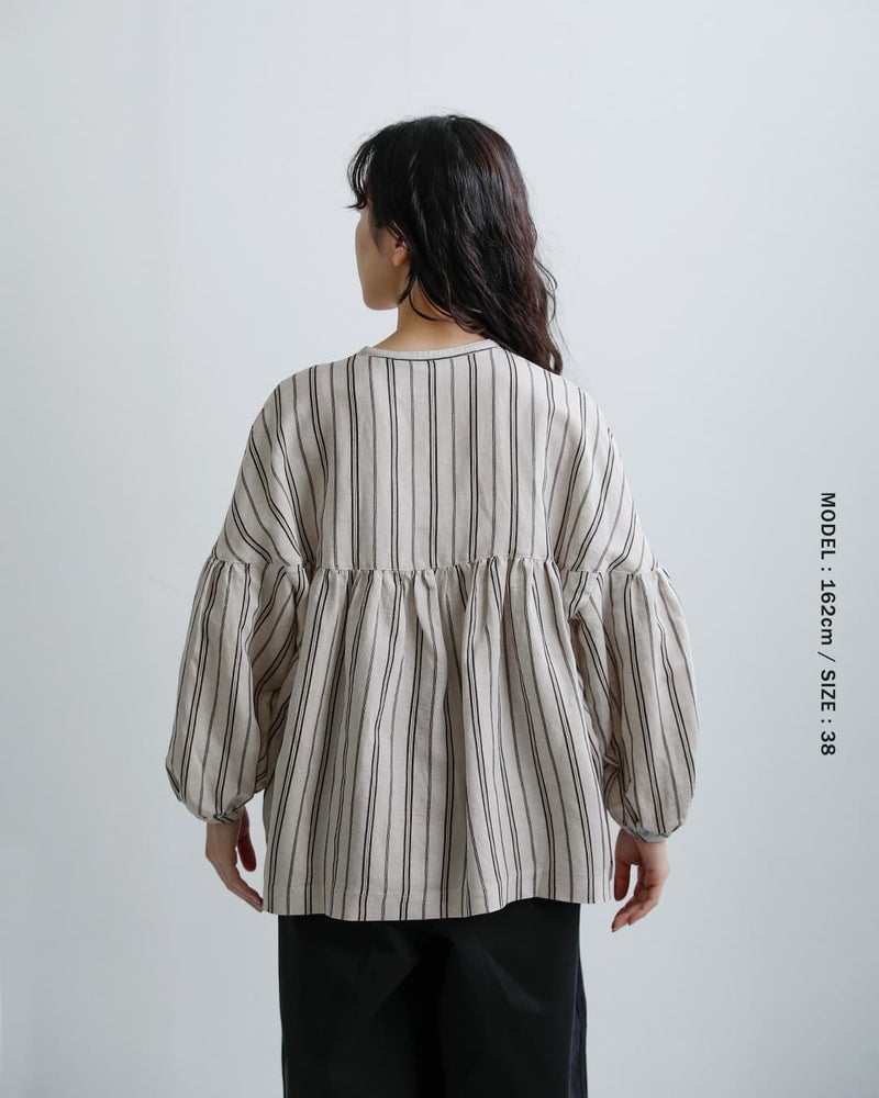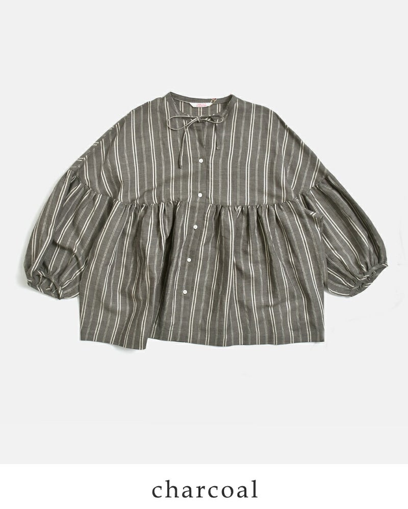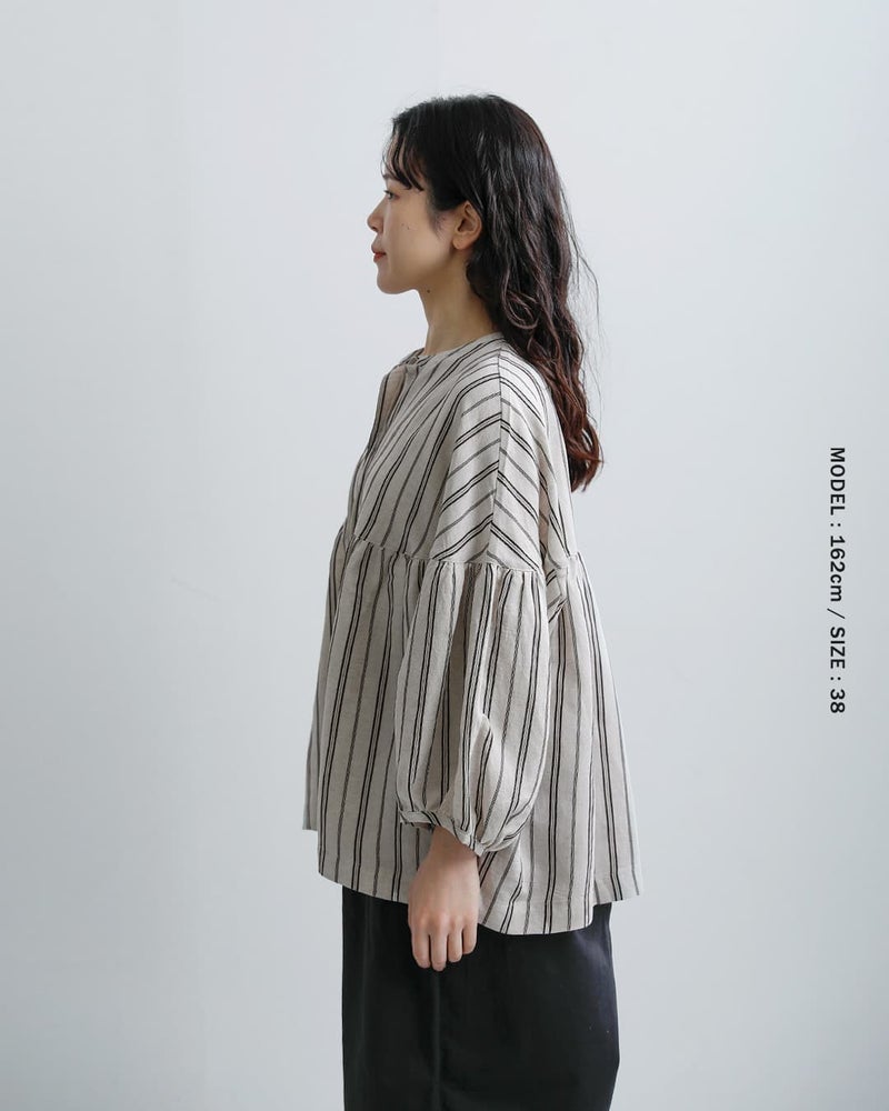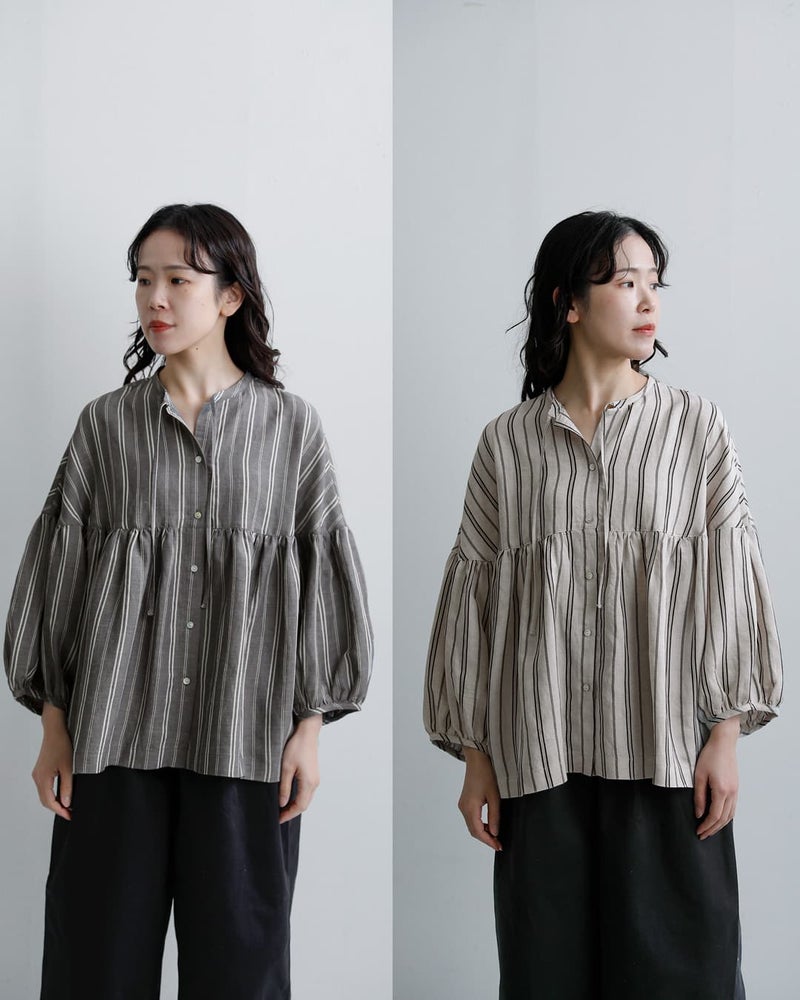fabrique en planete terre(ファブリケアンプラネテール)より、マルチストライプ 9分袖ギャザーブラウスのご紹介です。やさしい配色のマルチストライプが目を引く一枚。繊細なラインの重なりが、コーディネートに程よい華やかさと奥行きをプラスしてくれます。主張しすぎない配色で、日常のコーディネートに自然に溶け込みます。