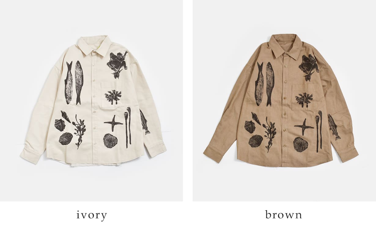 オリジナルで描いた、少し毒々しさのあるモチーフが印象的な「Creatures shirt」。