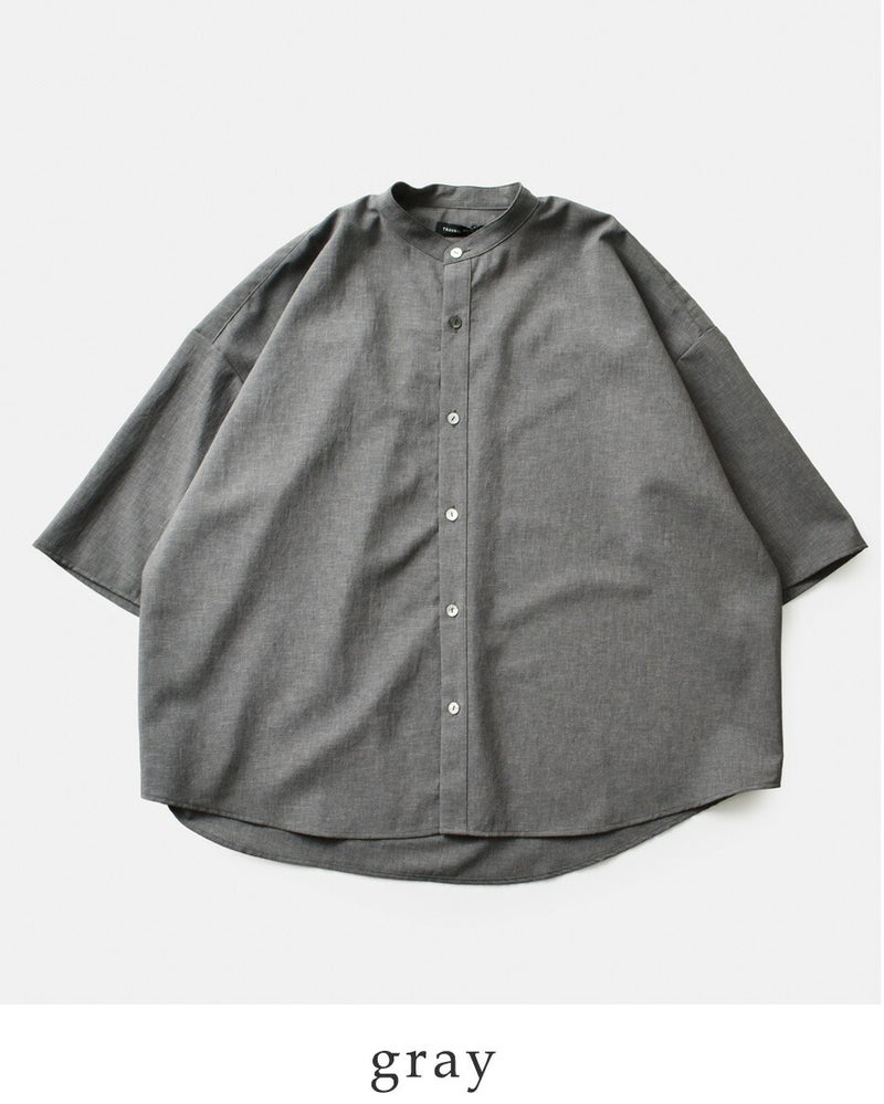 TRAVAIL MANUEL(トラバイユマニュアル)より、ハイツイスト Pストレッチ バンドカラー シャツ をご紹介します。薄手で涼しく、速乾性・撥水性に優れたハイツイスト Pストレッチを使用したバンドカラーシャツ。ゆったりとしたシルエットは体型カバーもしっかりしてくれるので安心。シンプル・ベーシックで流行りに関係なく、トラバイユマニュアルらしい、大人の雰囲気の落ち着いた印象の半袖シャツです。綺麗めの素材で、普段使いからおでかけまで、幅広いシーンで活躍してくれます。