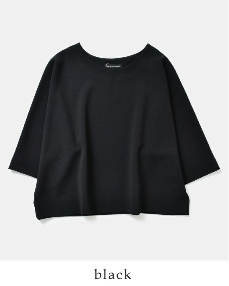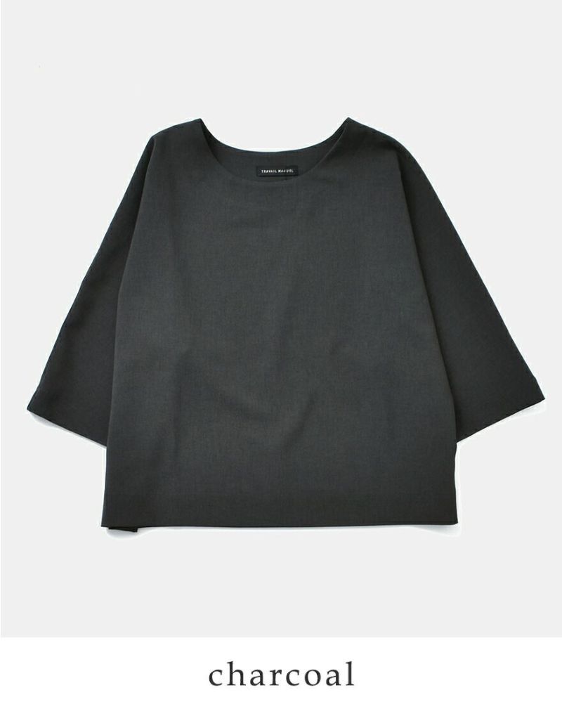 TRAVAIL MANUEL(トラバイユマニュエル)より、ダブルクロスTブラウスをご紹介します。ほのかな光沢が上品なダブルクロスがフォーマルシーンにぴったりなブラウスです。ボタンもファスナーもないプルオーバータイプのトップスで、ゆったりと着られる楽な着心地が魅力。入学式・卒業式・結婚式などの冠婚葬祭はもちろん、休日の日のおでかけや、普段の装いにも着られて、オンオフ問わず活躍してくれます。同素材のパンツもご用意があり、セットアップで合わせていただくと、雰囲気のあるオケージョンスタイルをお楽しみ頂けます。