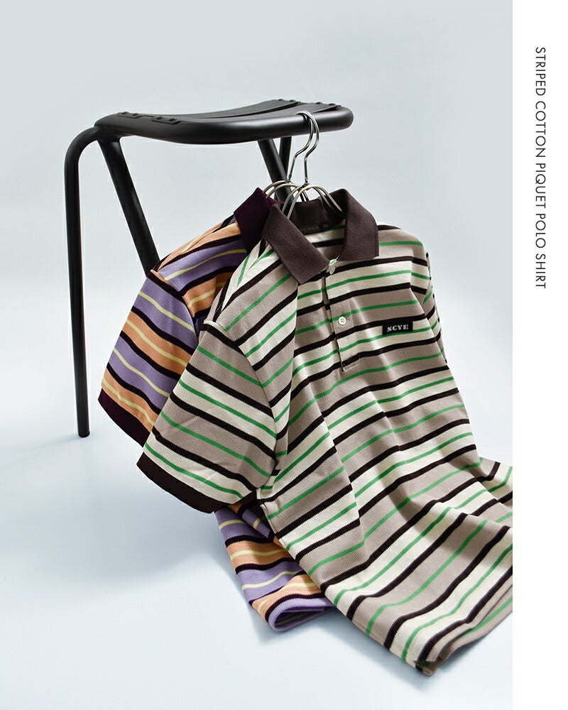 SCYE BASICS(サイベーシックス)より、コットン鹿の子 マルチボーダー ポロシャツ Striped Cotton Piquet Polo Shirtのご紹介です。レトロな色調をベースにオリジナルで組んだ、先染めのマルチボーダー鹿の子を使用したポロシャツ。素材には通気性と肌離れに優れた鹿の子編みを採用し、春夏シーズンにぴったりな清涼感ある着心地に。身幅にゆとりを持たせたボックスシルエットに、やや短めの着丈で軽快な印象に仕上げた一枚。リラックス感のあるフォルムながら、スタイリングのバランスが取りやすい絶妙なサイジングが魅力です。