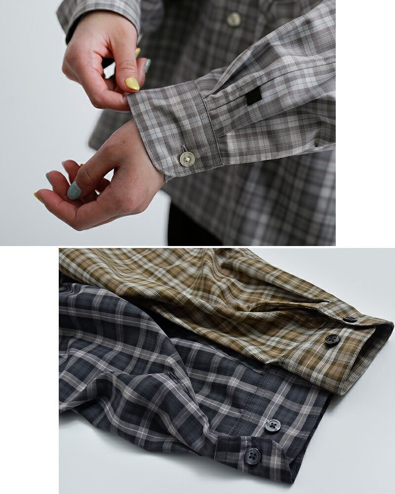 サッと羽織るだけで、シンプルなスタイリングにチェック柄のアクセントをプラス。軽い羽織りとしても活躍し、日焼け対策にもおすすめです。