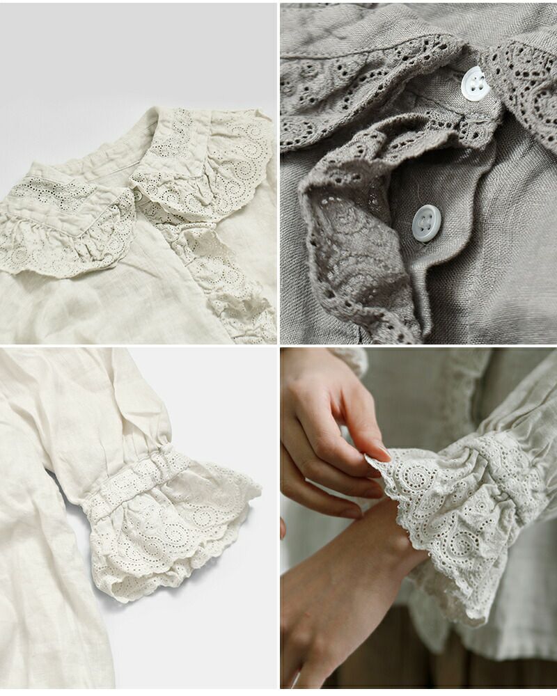 ふんわりとしたボリューム感のある袖に、袖口にもレースをあしらい統一感を演出。たくし上げてもバランス良く着こなせます。