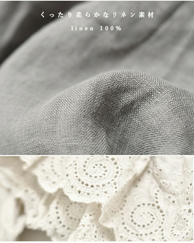 Gauze#(ガーゼ)より、リネンアンティーク フリルワンピース“ameri ANTIQUE FRILL ONE PIECE”をご紹介します。アンティーク調のレースフリルを随所にあしらい、クラシカルな雰囲気を纏ったブラウス。程よい甘さの落ち着きも感じさせる大人可愛い一枚。軽やかな着丈と程よいボリューム感で、パンツやスカートとのバランスも取りやすいデザインです。