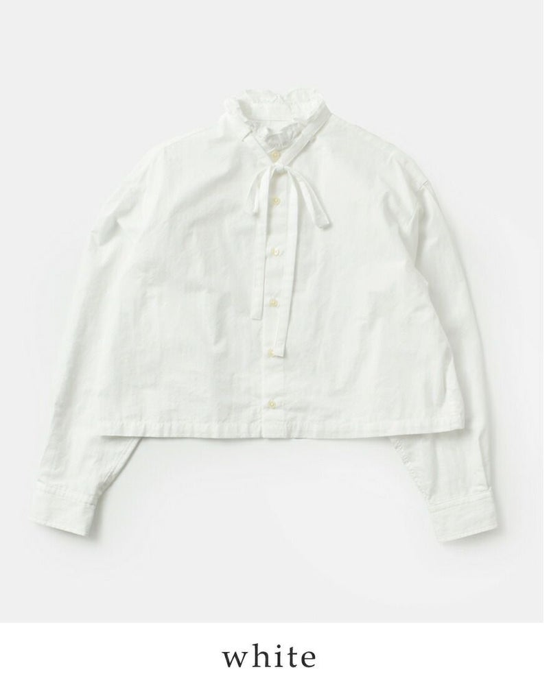 ウォッシュドコットンフリルカラータイブラウスopal-w