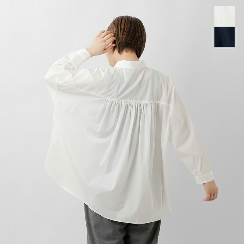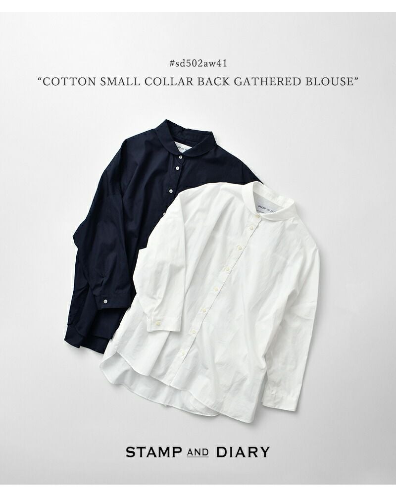 STAMP AND DIARY(スタンプアンドダイアリー)より、コットン スモールカラー バックギャザー ブラウスのご紹介です。100/1のスーピマコットンを使用した高密度ブロード生地で仕立てたブラウス。浜松で織られた上質な素材は、糸質の良さを感じられる自然なつやときれいめな表情が特徴的です。洗うごとに程よいナチュラルなシワが生まれ、カジュアルながらも上品に着こなせます。家庭でのお洗濯も可能で、気軽にお手入れいただけます。