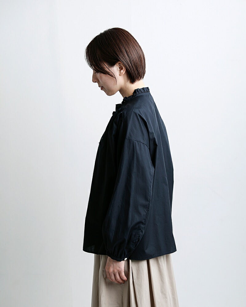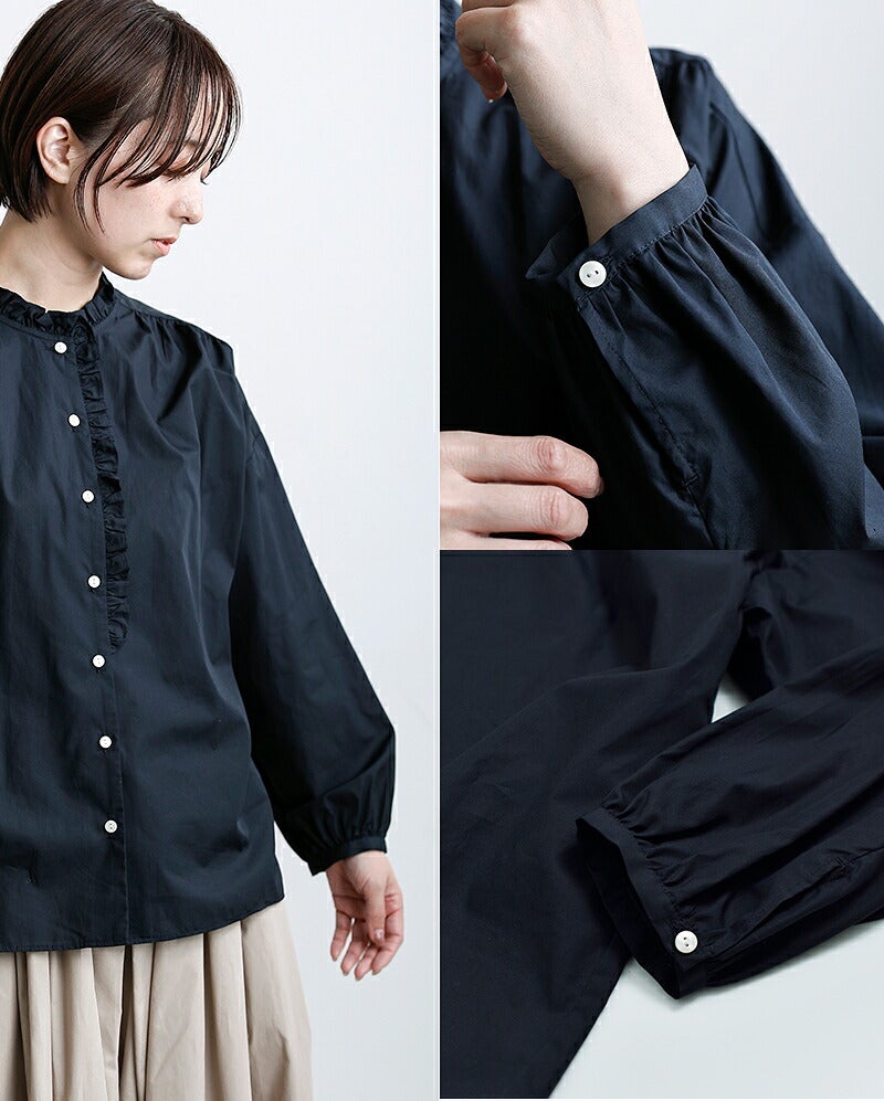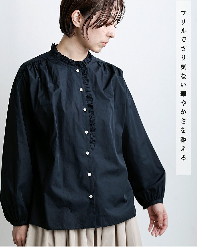 小さなフリルでさり気ない華やかさを添えるブラウス