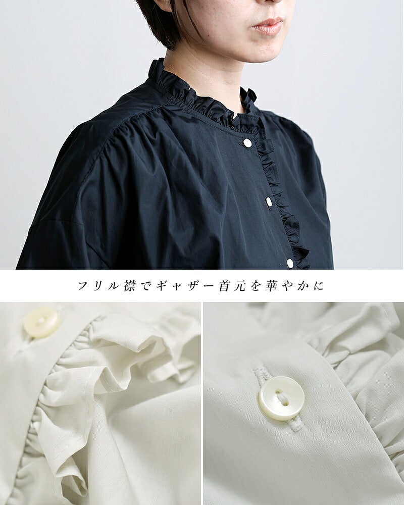 袖口は短いカフスで絞り、細かなギャザーを寄せています。