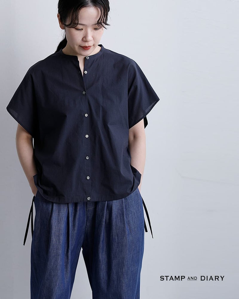 STAMP AND DIARY(スタンプアンドダイアリー)より、ドルマンスリーブ裾コード付きコットンブラウスをご紹介します。浜松で織り上げられたジャガードギンガムチェック生地を使用。繊細な織りで表現されたチェック柄は、奥行きのある表情とほんのりとした透け感が魅力です。しなやかで軽やかな風合いが、季節感のある涼やかな着こなしを叶えます。裾にはコードを施し、シルエットのアレンジも可能。きゅっと絞って丸みのあるフォルムにしたり、そのままラフに着こなしたりと、スタイリングに合わせて変化を楽しめます。一枚でさらりと着るのはもちろん、インナーとのレイヤードで透け感を活かした着こなしもおすすめ。上品さとリラックス感を兼ね備えた、大人のデイリースタイルに寄り添うブラウスです。