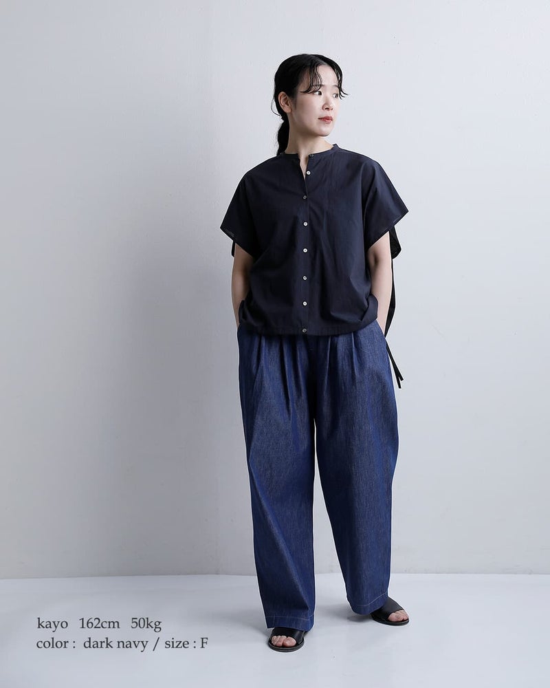 ゆったりとしたドルマンスリーブが、身体のラインをやさしく包み込み、リラックスした着心地に。動くたびに自然なドレープが生まれ、抜け感のあるシルエットを演出します。上品さとリラックス感を兼ね備えた、大人のデイリースタイルに寄り添うブラウスです。