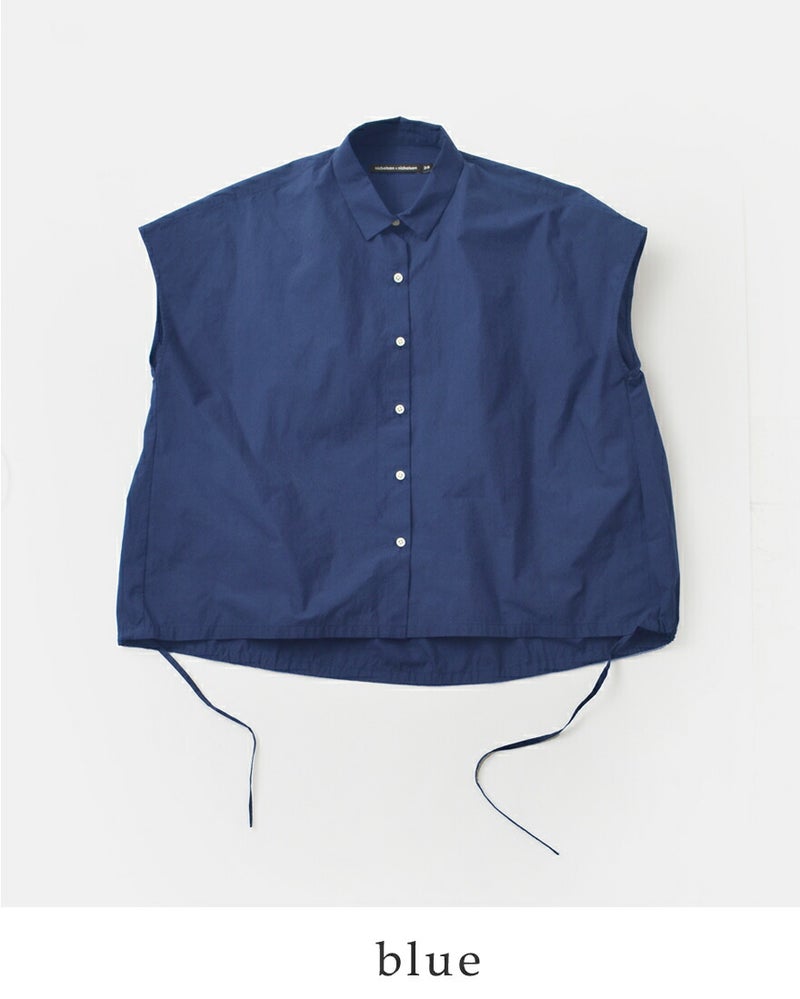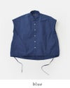 小ぶりな衿でシンプルに仕上げたフロントに対して、バックスタイルはたっぷりとったギャザーがポイントのブラウス。合わせやすい爽やかなカラーバリエーションです。