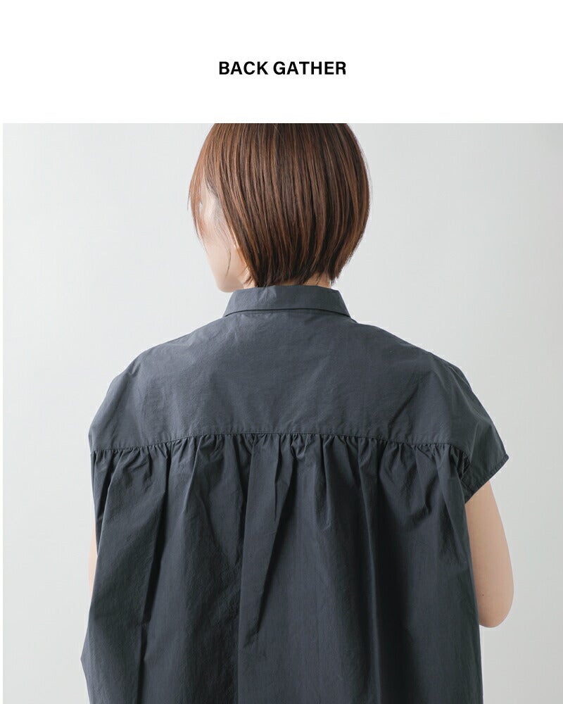 ウォッシュドコットン バックギャザー ショートスリーブ ブラウス “TENDER” tender-w