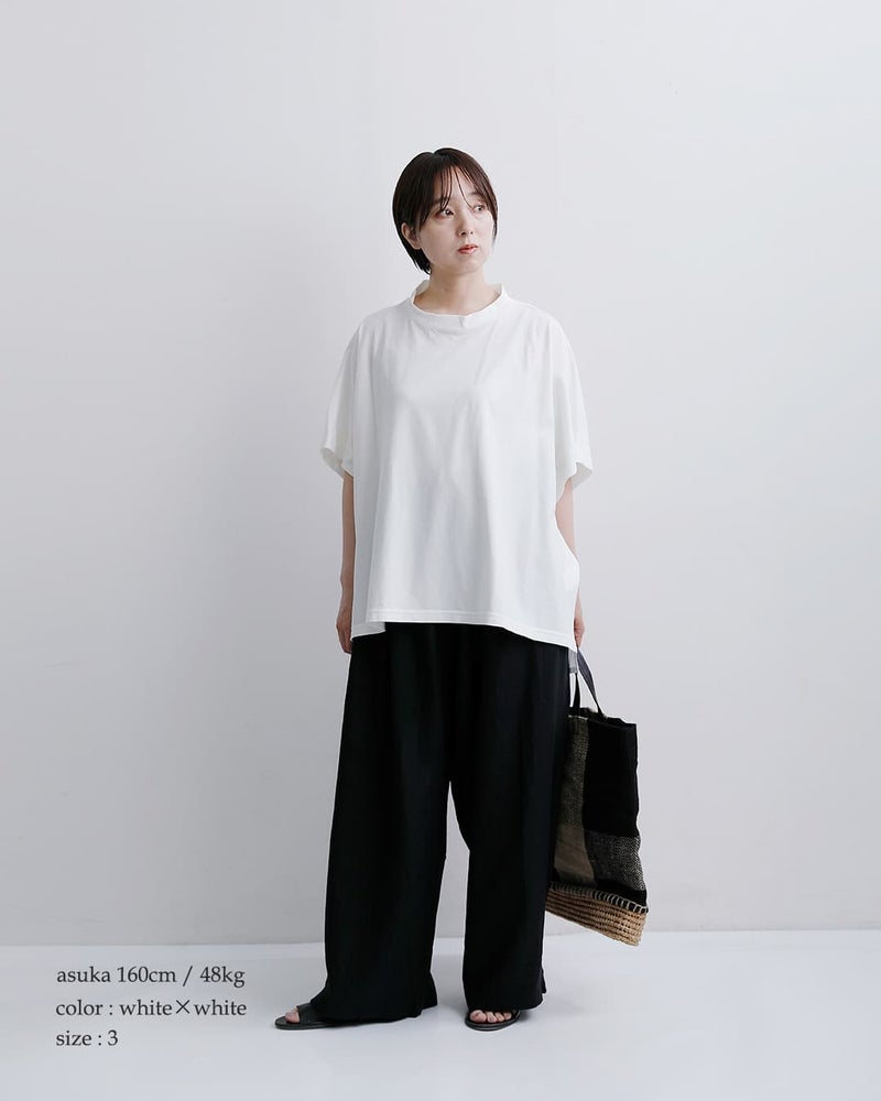 身体のラインを拾わないワイドなシルエットで、風が通りやすく非常に涼しいです。サイドにスリットを配置しています。