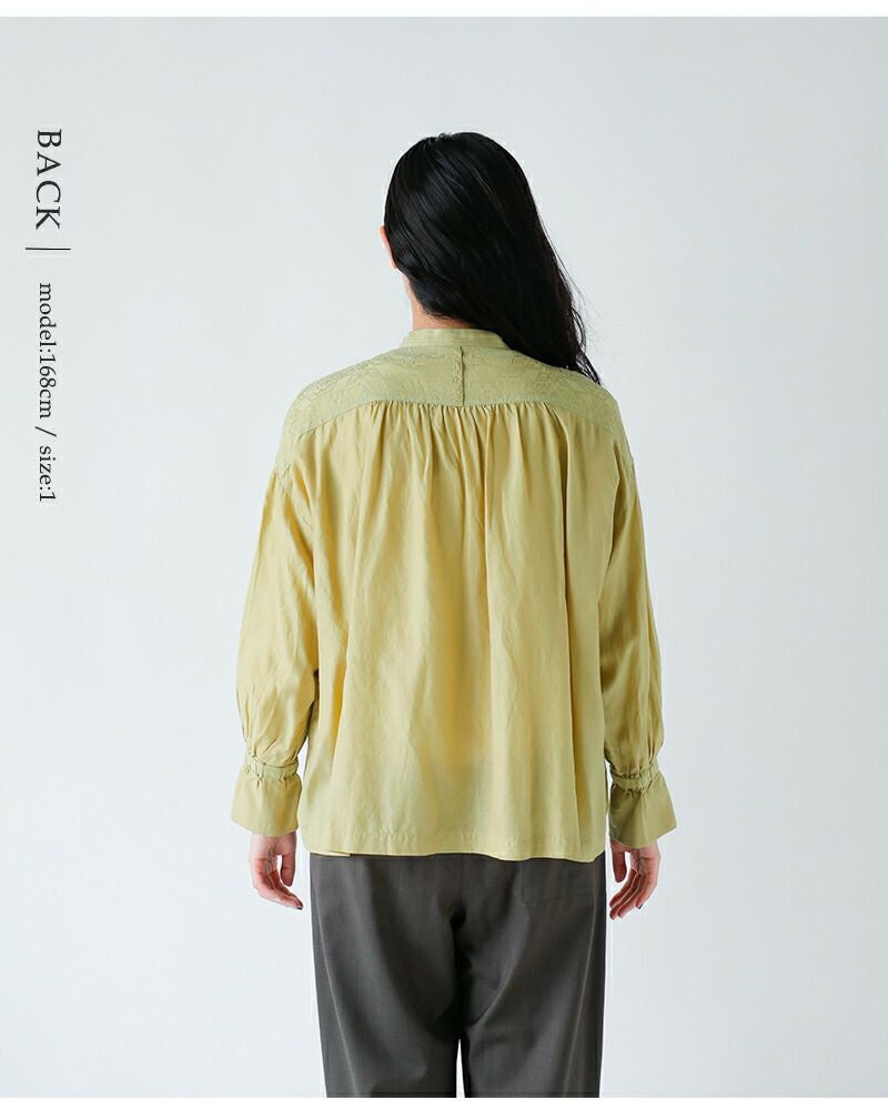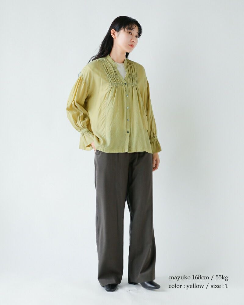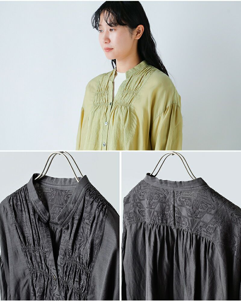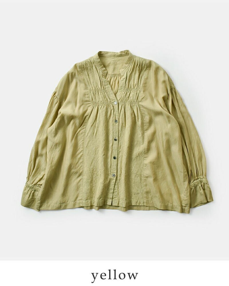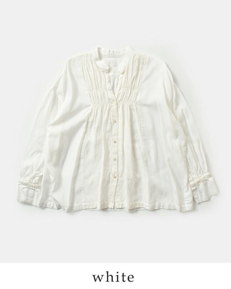 ジャガードギャザースタンドカラーシャツu24-11574-53