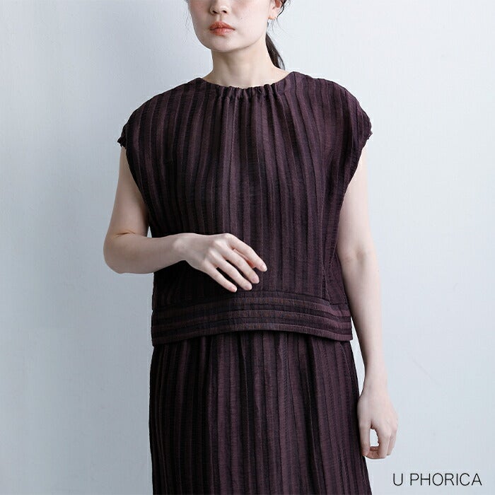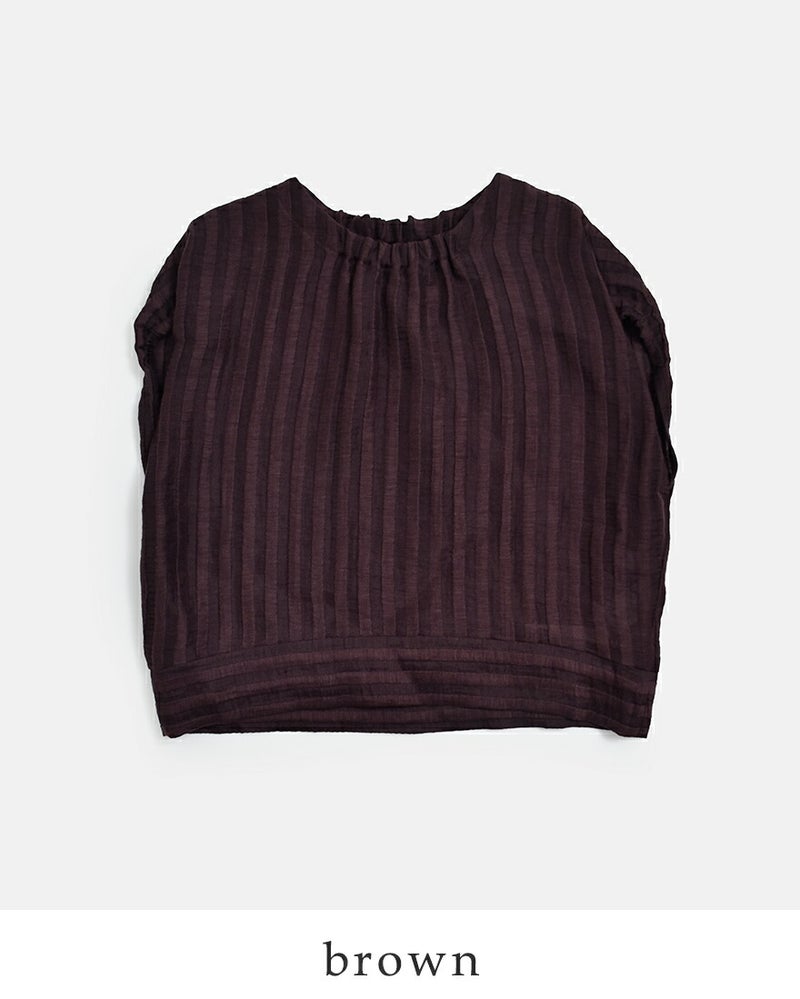 U PHORICA(ユーフォリカ)より、リネンジャガードボクシーブラウス“FRENCH LINEN AMICAL SHT”のご紹介です。トルコの老舗生地メーカーACAR社のジャガード生地を使用。微光沢感のある上質な質感で麻のナチュラルさとナイロンの透明感に加え、ストライプ状の凸凹したさりげない立体感を併せ持った素材。軽くてハリ感があり風通しも良いので、夏でも着用しやすい生地感です。ボクシーなシルエットの中にも衿、袖の一部分のギャザーゴムディティールが、立体感と女性らしさのある雰囲気のブラウスです。