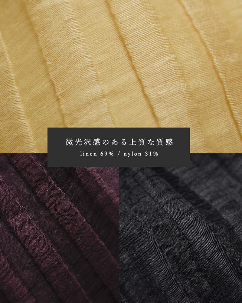 トルコの老舗生地メーカーACAR社のジャガード生地を使用。微光沢感のある上質な質感で麻のナチュラルさとナイロンの透明感に加え、ストライプ状の凸凹したさりげない立体感を併せ持った素材。軽くてハリ感があり、風通しも良いので夏でも着用しやすい生地です。