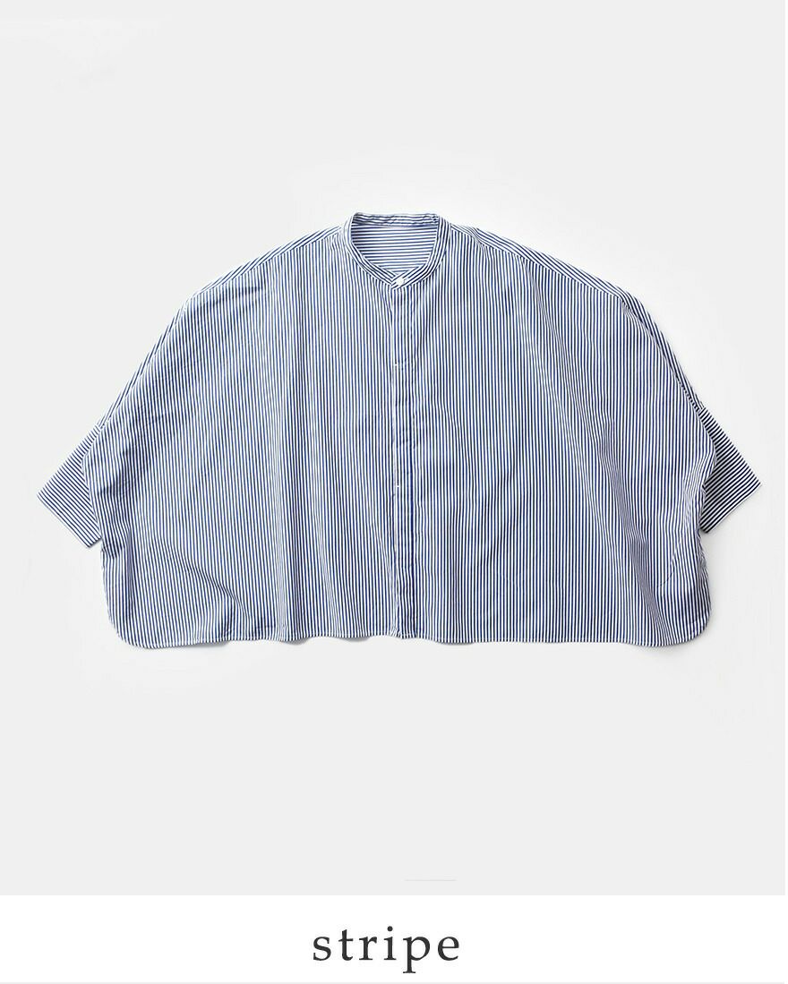 universal tissu(ユニヴァーサルティシュ)より、ナチュラルタイプライター ストライプ バンドカラー ポンチョ シャツ をご紹介します。