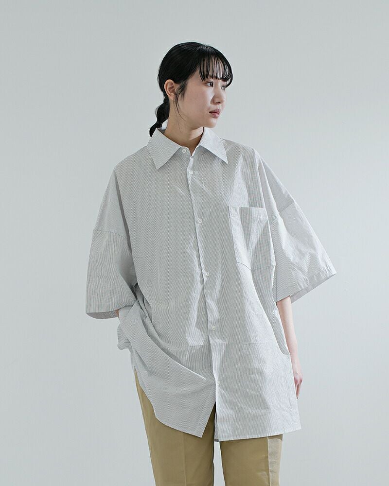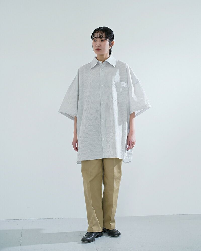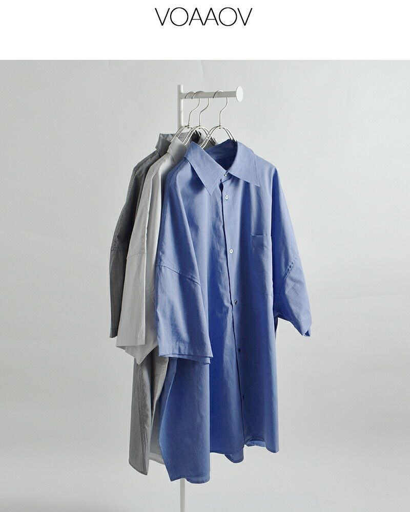 VOAAOV(ヴォアーブ)より、コットン 半袖 XXXXL シャツ をご紹介します。春夏定番のXXXXLシャツをリニューアル。XXXXL シャツという名前の通り、スーパービッグサイズで作られたシャツです。ルーズにならない絶妙なバランスで、抜け感のある着こなしを楽しめます。長めのショートスリーブで、春夏に涼しい仕様となっています。