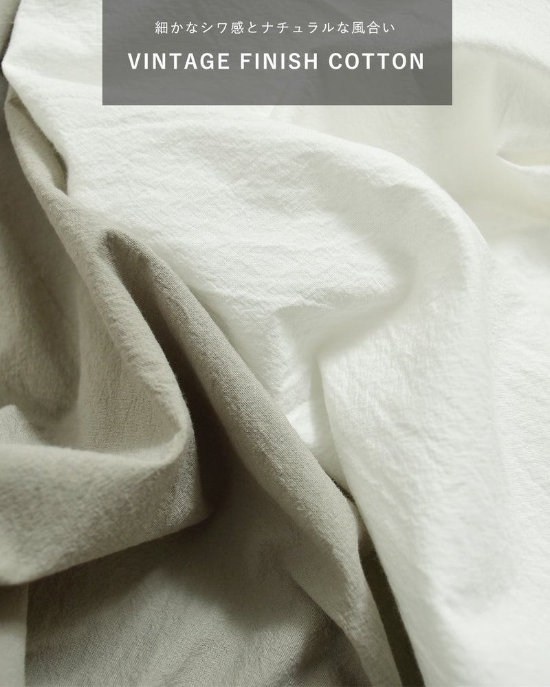 細かい凹凸のようなシワ感を施したヴィンテージフィニッシュコットン。さらりと肌触りが爽やかで快適。適度なハリがあり、シルエットを美しく保ってくれます。
