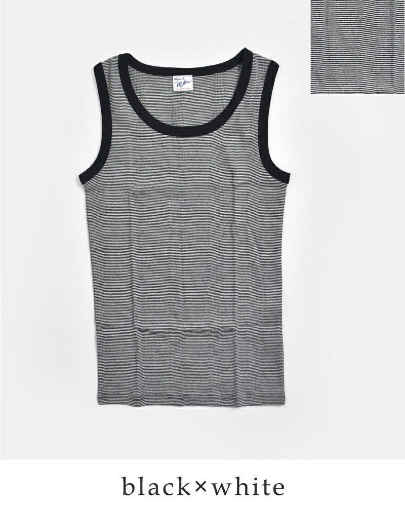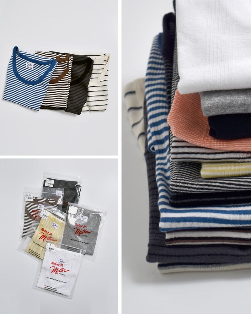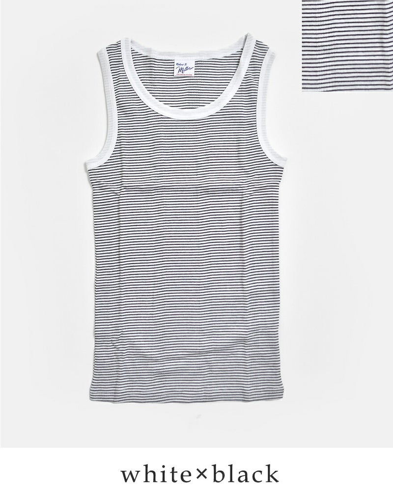 Miller(ミラー)社はアメリカのアンダーウェアブランド。1937年創立。良質なアメリカコットン100%素材とパネルリブ仕様が特徴です。パネルリブと呼ばれるリブをボディに編み込む製法は当時では画期的なもので、従来の素朴なフライスとは異なり伸縮性に優れ、肌触りも抜群。その製品のクオリティの高さから、長きに渡って多くの人々に愛用され、現在でもなおアメリカ製にこだわり生産している老舗ブランドです。