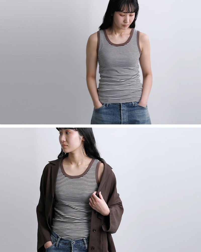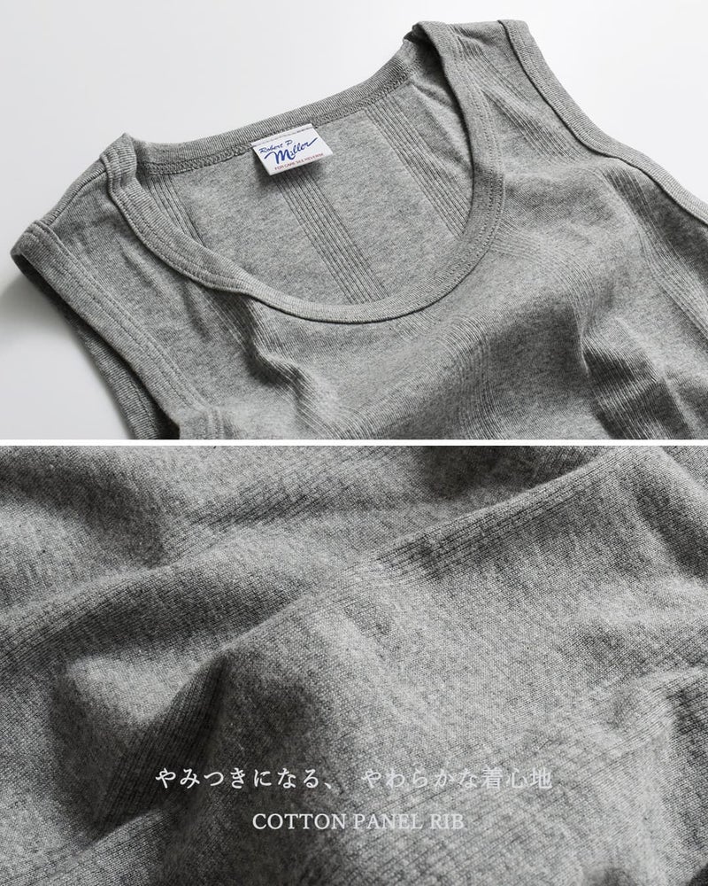 MILLER(ミラー)より、コットンパネルリブタンクトップをご紹介します。miller=「パネルリブ」と呼ぼれるほど知名度があり、肌触り・着心地が良く、伸縮性にも優れた独自のリブ編み手法を用いています。着るたびに自分に馴染む着心地の良さで、インナーとしてもレイヤーアイテムとしても使い勝手の良いアイテムです。