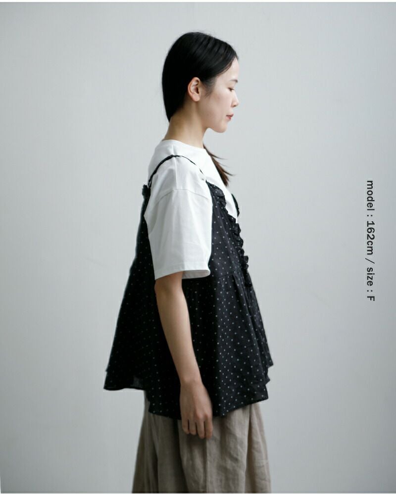 ラミーリネン麻前後2wayスモールドットカシュクールフリルAラインキャミソール Gauze# ガーゼ ラミーリネン 2way スモールドット カシュクール キャミソール ORIGINAL SMALL DOTS CASHE COEUL CAMISOLE g1168 レディース 2026ss新作 春夏