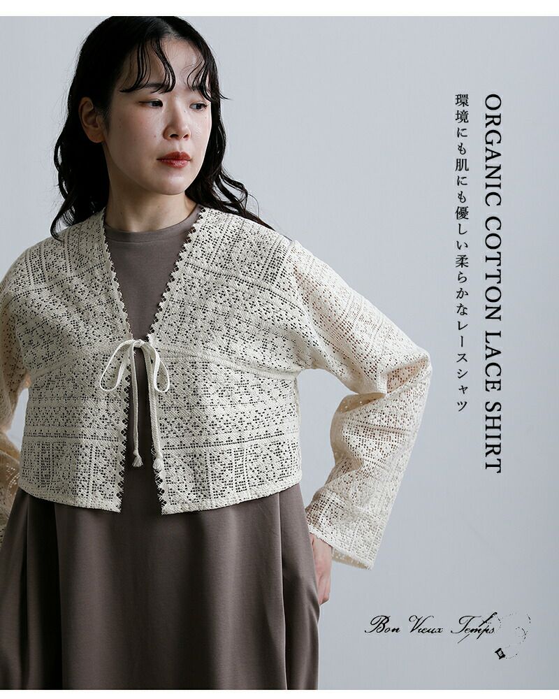 bon vieux temps(ボンビュータン)より、オーガニックコットン レース シャツのご紹介です。