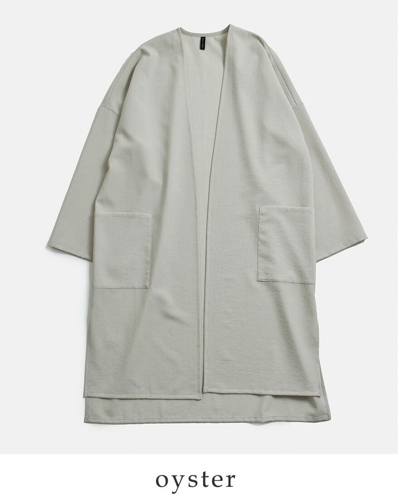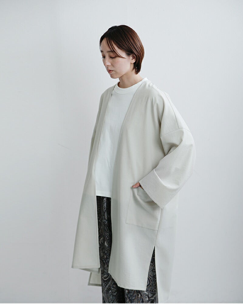 フロントはボタンレスで、ガウンのようにさっと羽織ることが出来るデザイン。