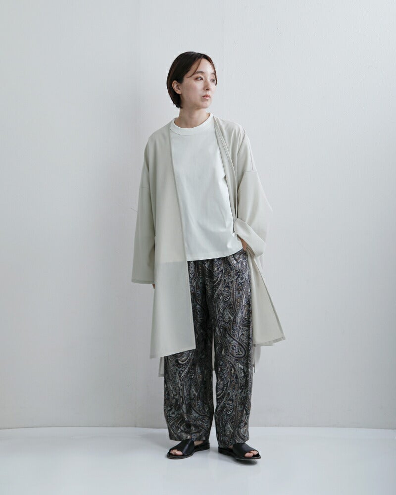 TRAVAIL MANUEL(トラバイユマニュアル)より、シャドー サッカー ライト ローブをご紹介します。さらりとした涼しいシャドーサッカーを使用したナチュラルで品の良いライトローブ。軽量で肌に張り付きにくい生地で、春夏に涼しく着ていただけます。余計な装飾のないシンプルなデザインで、着回しやすく、普段使いにもぴったり。両サイドにポケット付き。長袖のローブで、春夏はもちろん、秋口の羽織りにもおすすめです。