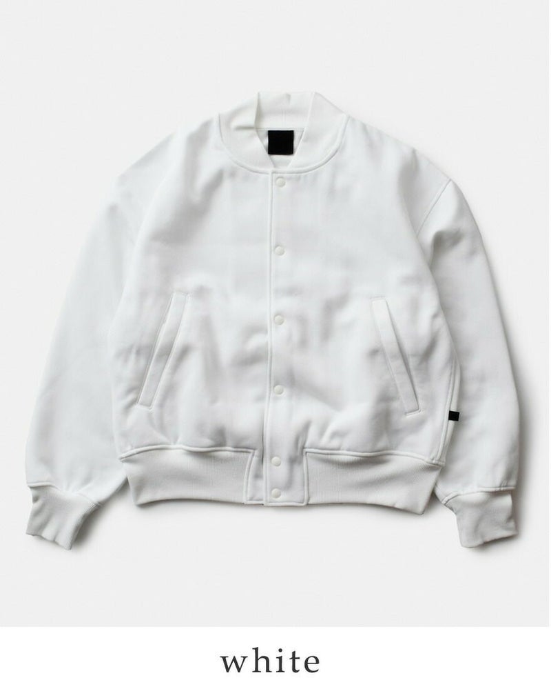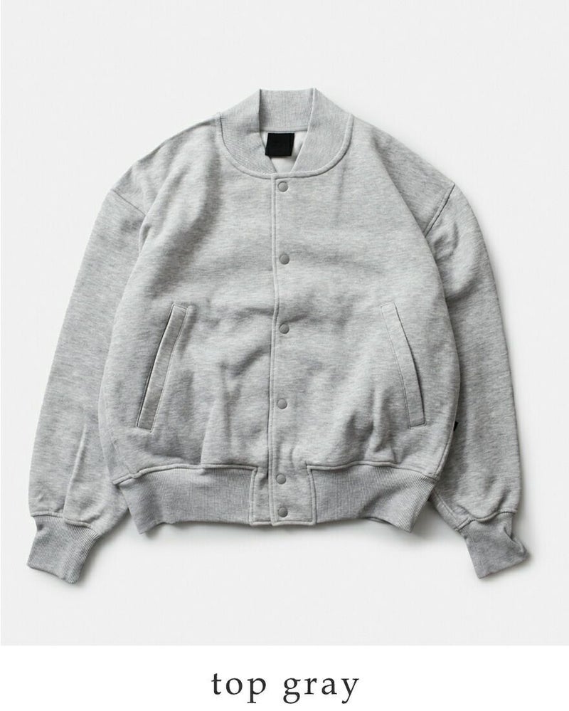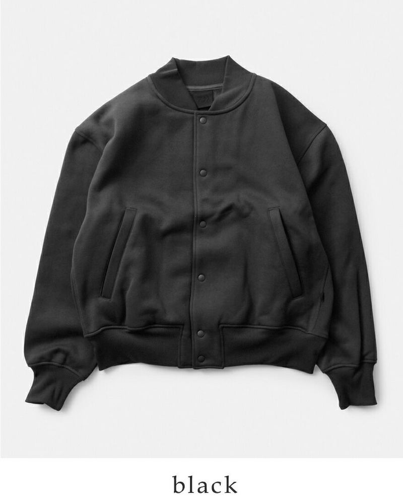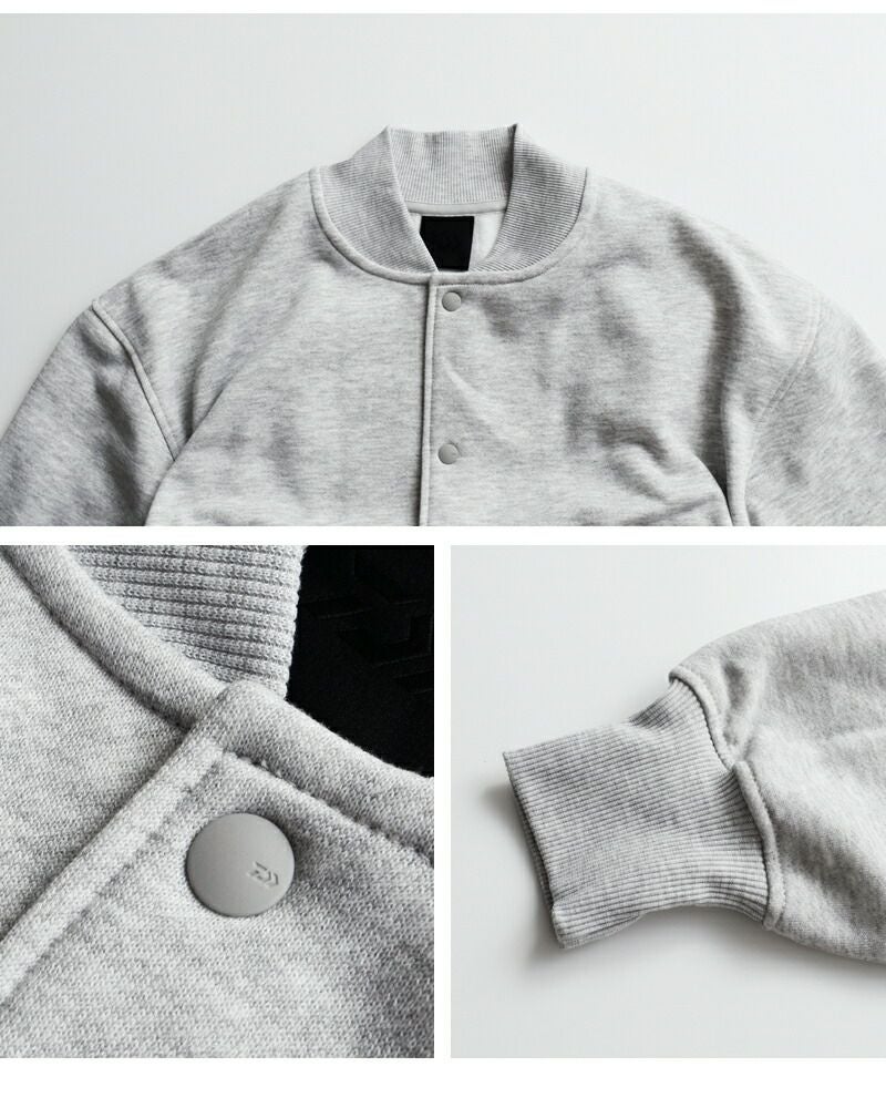 サイドに伸縮性のあるフライス地を仕様したシンプルなベースボールジャケット型スナップカーディガンです。ゆったりとしたシルエットですが、袖口のリブをキツめに調整し釣りの際に邪魔にならないよう細かいフィッティングにこだわりました。ポリエステル100%のヘヴィウェイトスウェット。裏起毛を強めにかけているのでフリースのような暖かさを感じることができます。アフターフィッシングに最適な一枚。様々なバリエーションで作成したブランドオススメのコレクションになります。