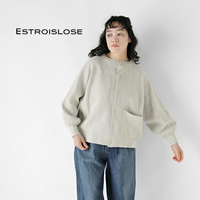 ESTROISLOSE(エストゥロワルーズ)より、コットン ミラノリブラグランカーディガンのご紹介です。イタリアのミラノで生まれたことから、「ミラノリブ」と呼ばれるニット素材を使用したカーディガンです。ニット特有の伸びやヨレが起こりにくく綺麗なシルエットをキープ。しっかりとした素材感は、きれいめで上品な雰囲気を演出してくれます。丸みのあるシルエットが女性らしい優しい雰囲気を演出。やや短めの着丈はボリュームのあるスカートやパンツとの相性が抜群です。ポケットはアシンメトリーな形と配置でエストロらしい遊び心が取り入れられたデザインです。