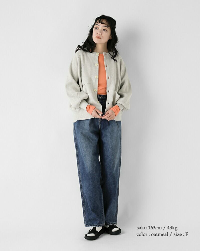 ●首元はすっきりしたベーシックなクルーネック。さりげなくリブを配し、カジュアルな雰囲気に。