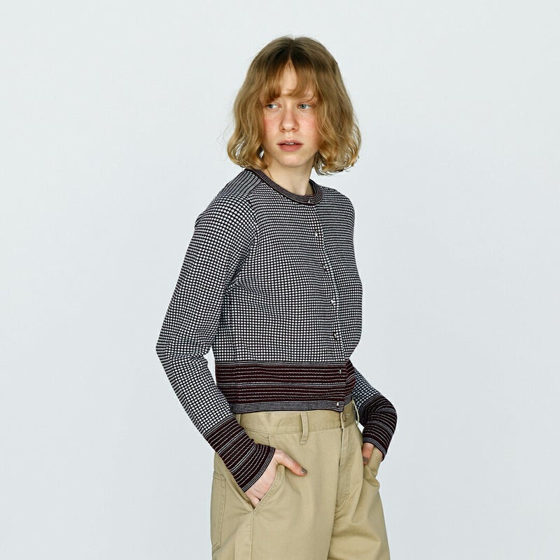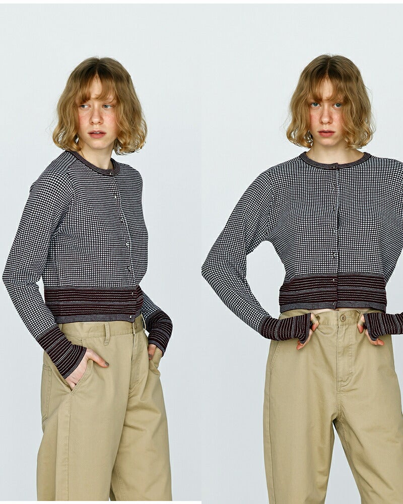 クラシカルな配色とコンパクトな丈感が魅力のショートカーディガン。