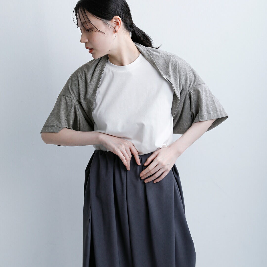 他の画像を見る 二の腕カバーや冷房日焼け対策にも活躍するコーディネートをスタイリッシュにするコットンスリーブショールTシャツ 【クーポン対象】ALWEL オルウェル コットン スリーブ ショール Tシャツ db-1 レディース 2026ss新作 春夏 ¥ 16,500 ¥ 16,500 税込 クーポン対象 販売期間 2026/04/28 10:00 〜 カートに入れる お気に入りに登録する