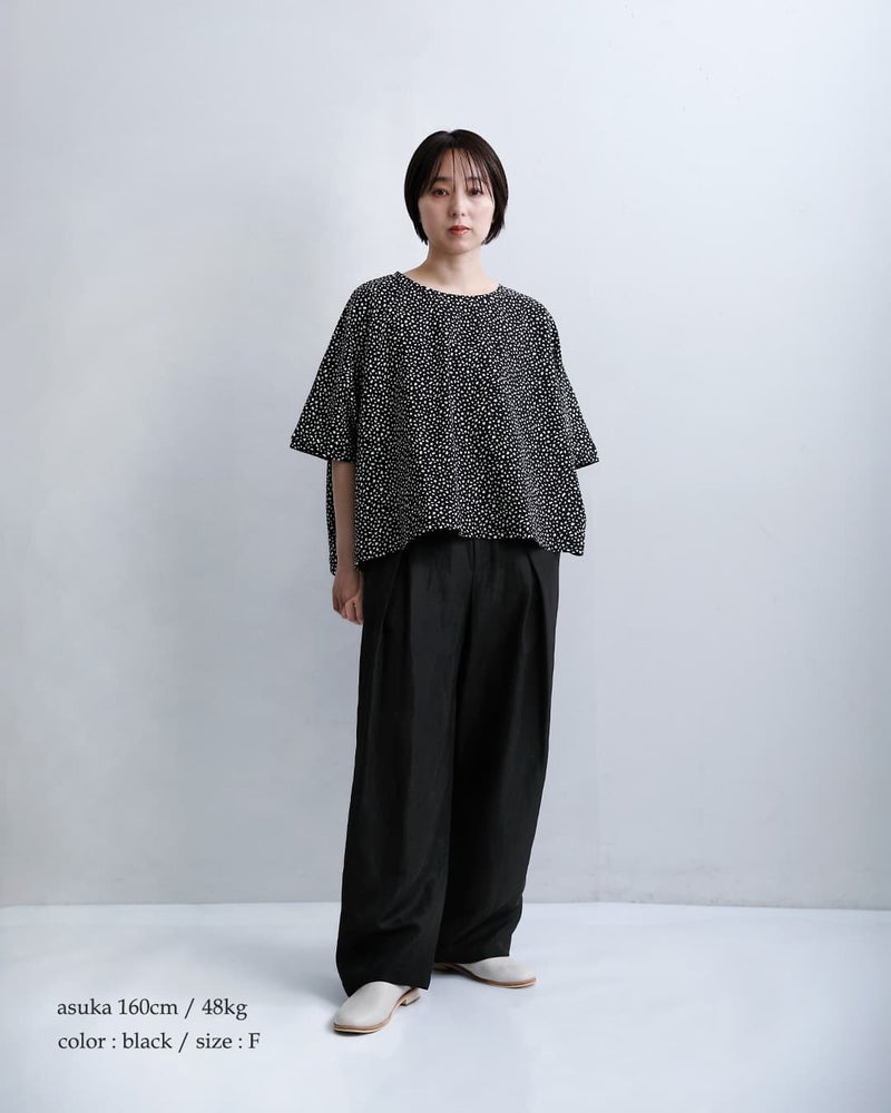 ●ポリエステル100% / 日本製ハリのある素材を使用し、美しいシルエットをキープ。軽やかでドライタッチな質感が特徴で、暑い季節でも快適な着心地を実現します。シワになりにくく扱いやすい点もデイリーに嬉しいポイント。日本製ならではの丁寧な仕上がりも魅力です。
