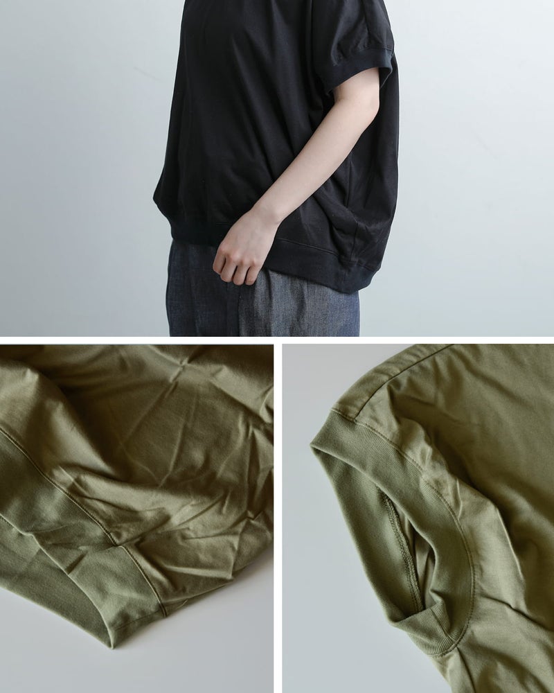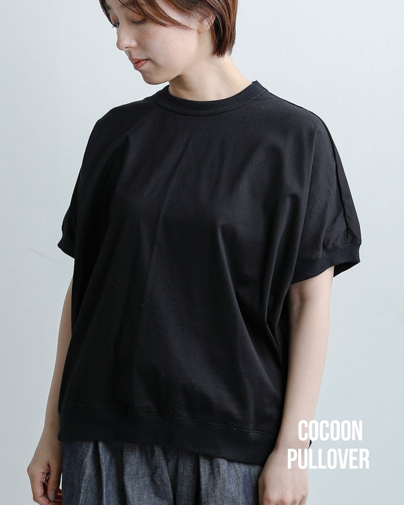 ふんわりとした立体シルエットのコクーンデザイン。リラックス感があって、モードな雰囲気も同時に楽しめます。ゆったりとしたサイジングで、裾はわずかにラウンドしており前後差のある丈感で、身体のラインを拾わず、安心して着ていただけます。光沢感のあるシルケット加工の生地がきれいめな雰囲気で、おでかけにもお使いいただけます。