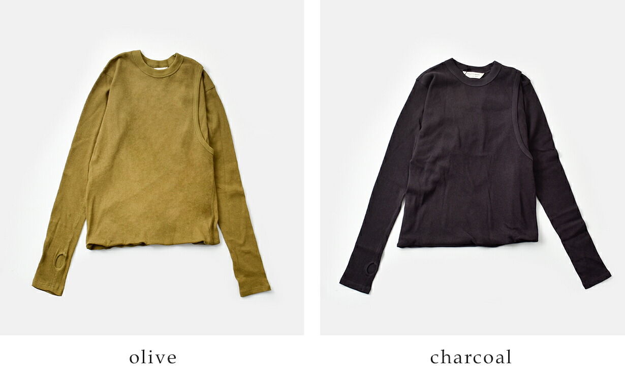 ※こちらのページでは、チャコール着用モデルはクルーネックスタイル、オリーブ着用モデルはVネックスタイルとなっています。