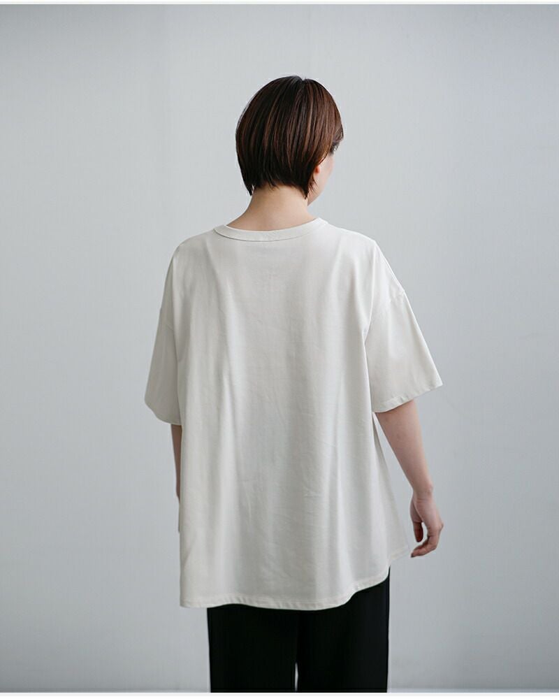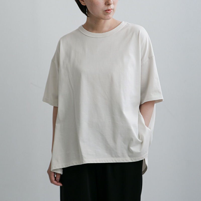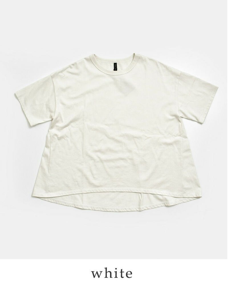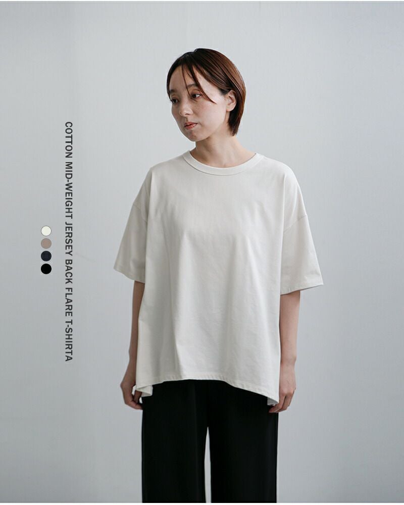 程よい厚みのミディ天竺コットンを使用した、デイリーに頼れるバックフレアTシャツ。