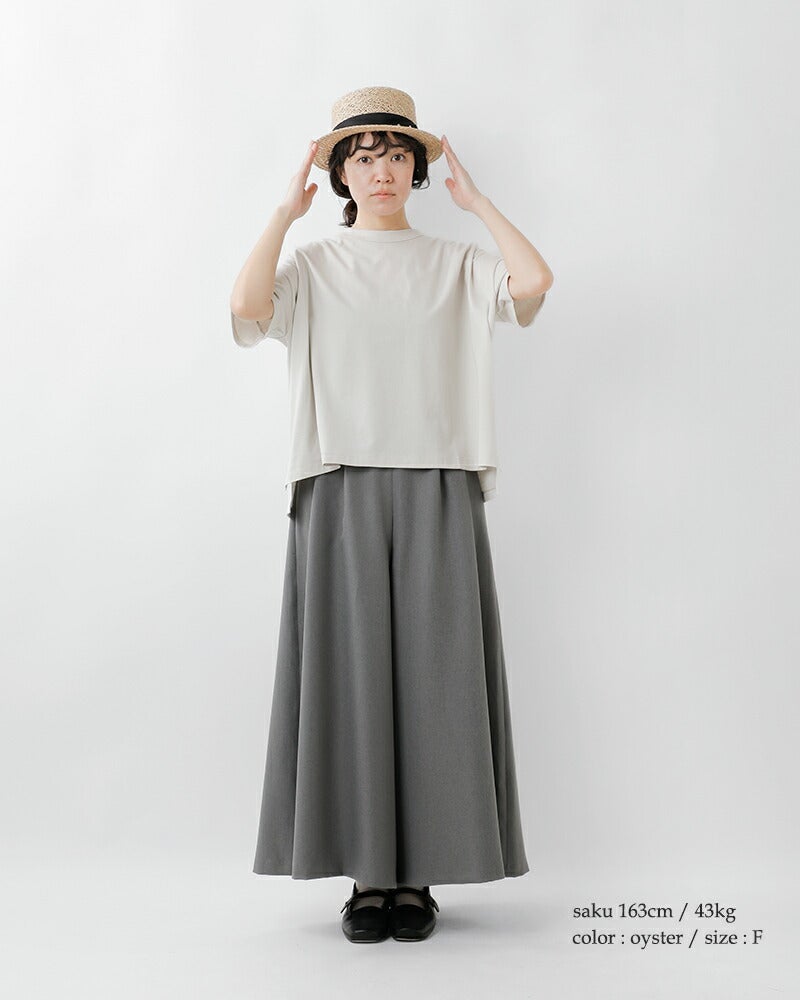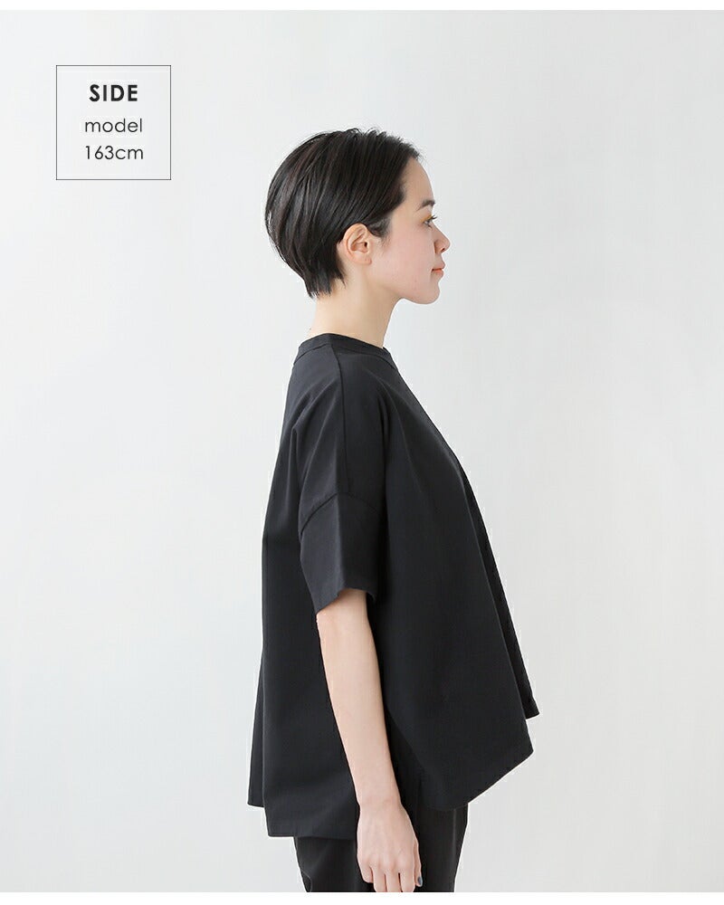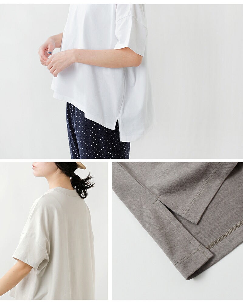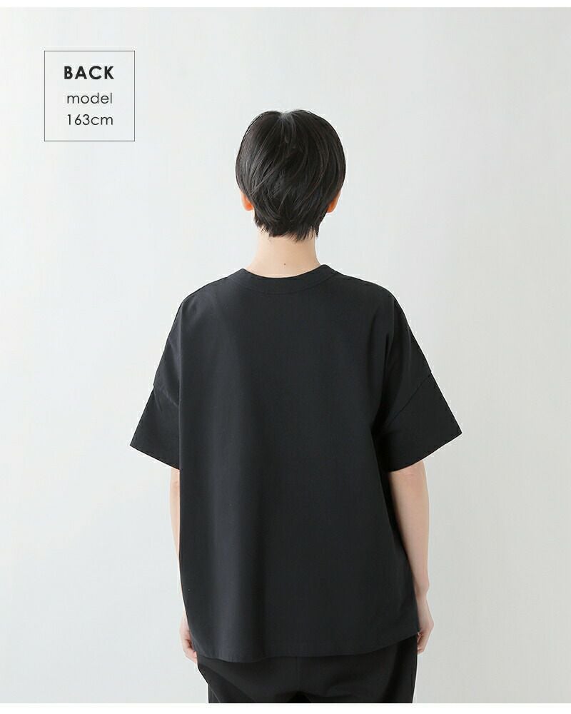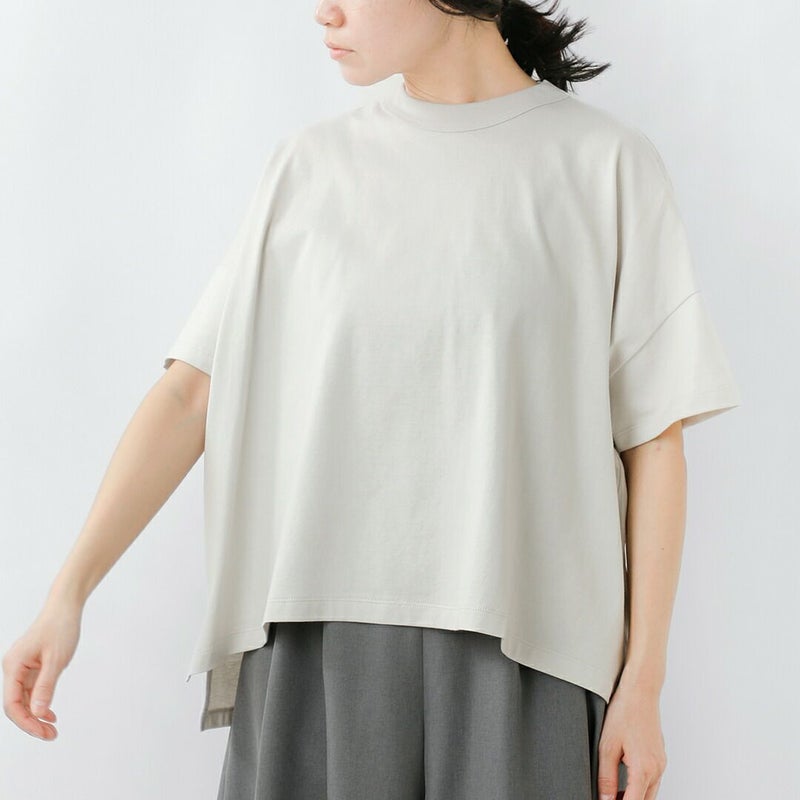 たっぷりとした身幅で体のラインを拾わず、安心して着て頂けるデザイン。リラックス感があり、軽く着られるので清涼感のある着心地なのも嬉しいポイントです。