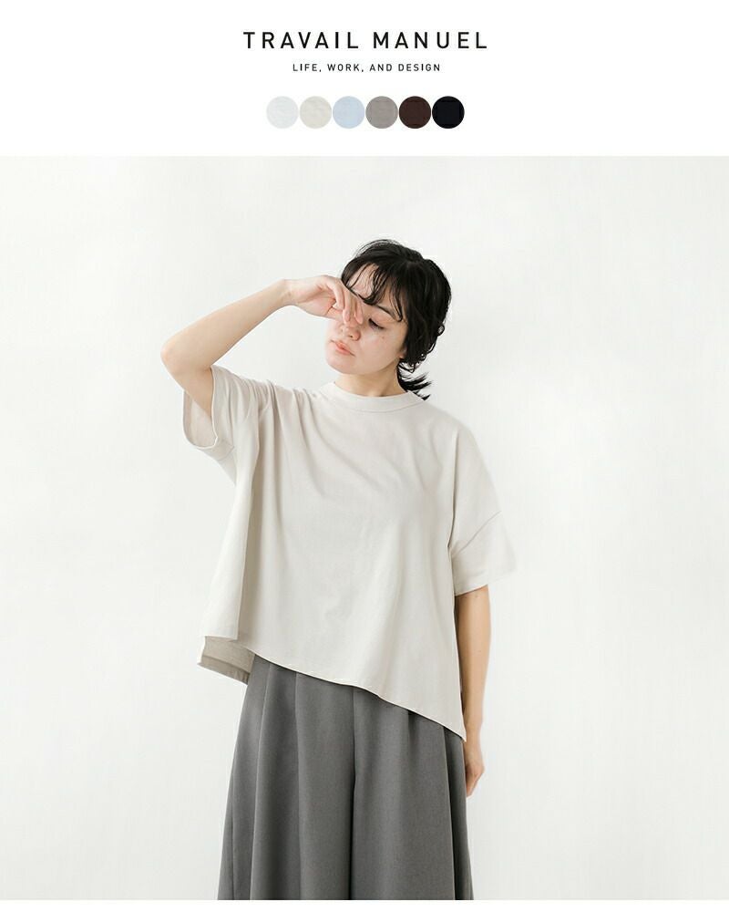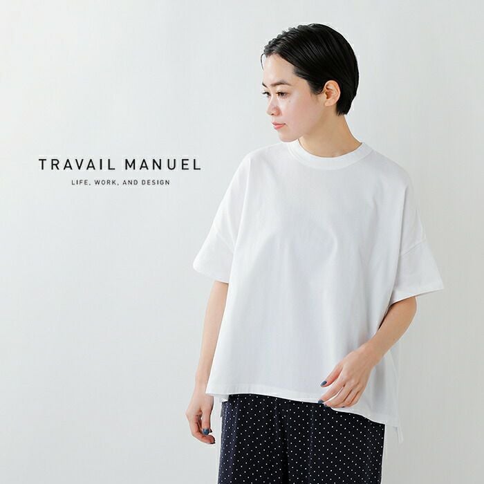TRAVAIL MANUEL(トラバイユマニュアル)より、コットン クラシック天竺 スリット Tシャツのご紹介です。ワイドな身幅と程よい小さな袖により、バランス良くまとめられたシンプルなTシャツです。しっかりとしたコットン地で伸縮性もあり心地良い肌触りとなっているので、デイリーに扱いやすい一枚。カジュアルなパンツスタイルも、スカートと合わせてよりリラックス感ある着こなしも◎。どんな装いにも合わせやすい、使い勝手の良いカットソーです。