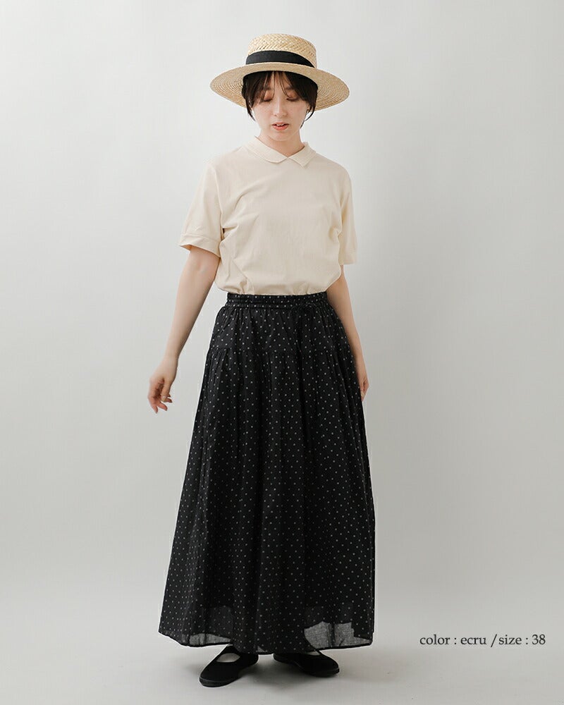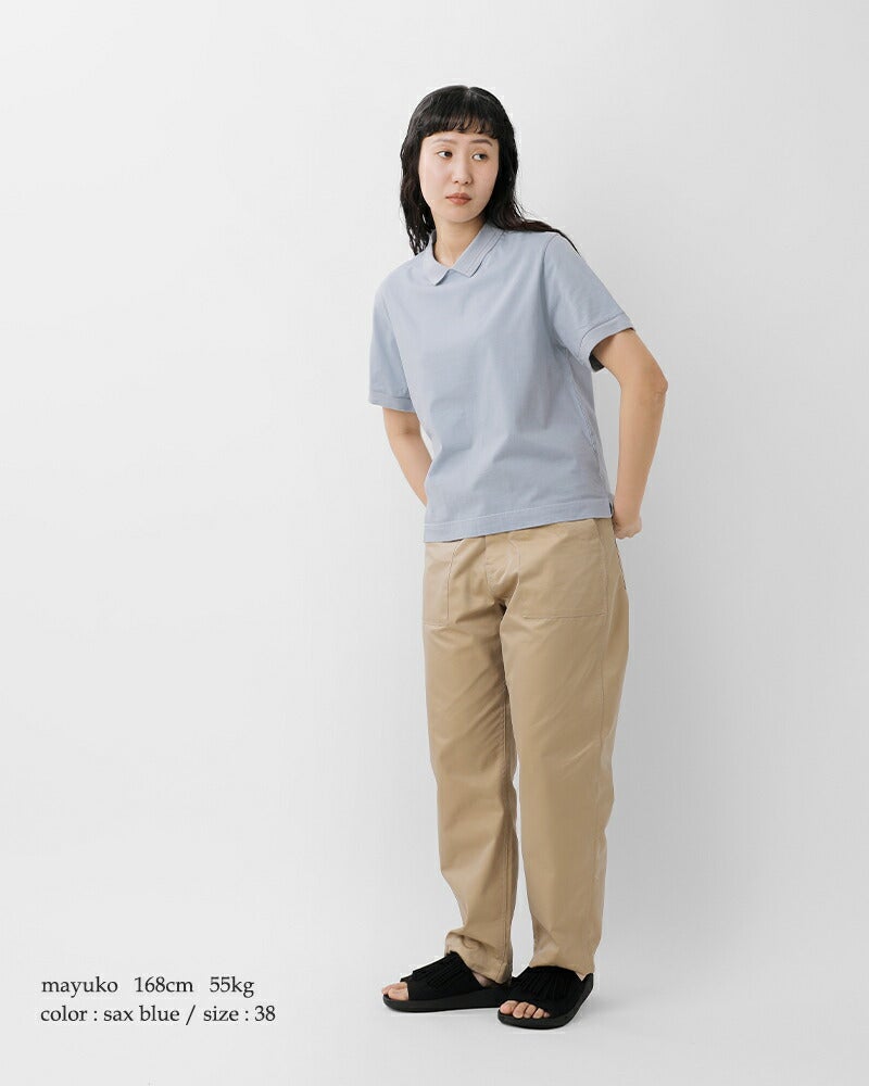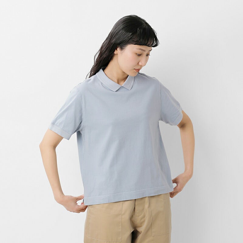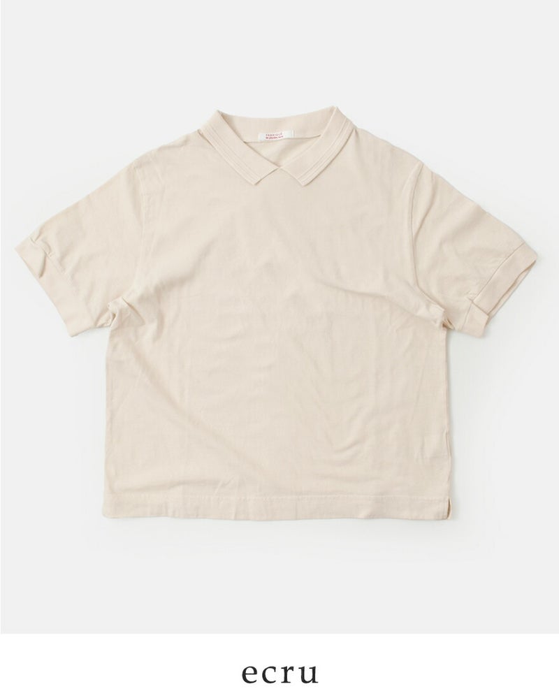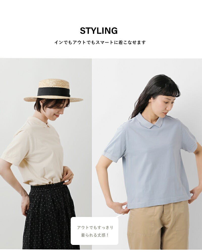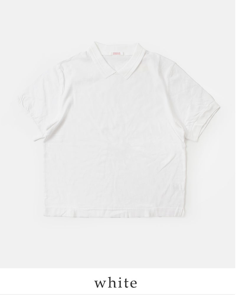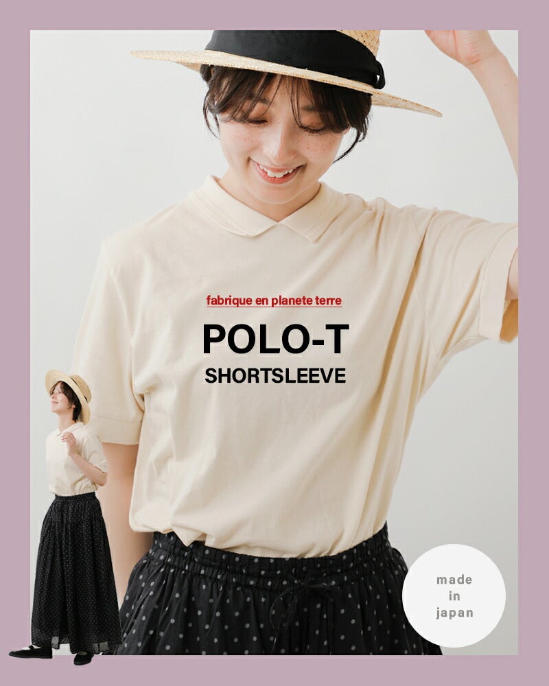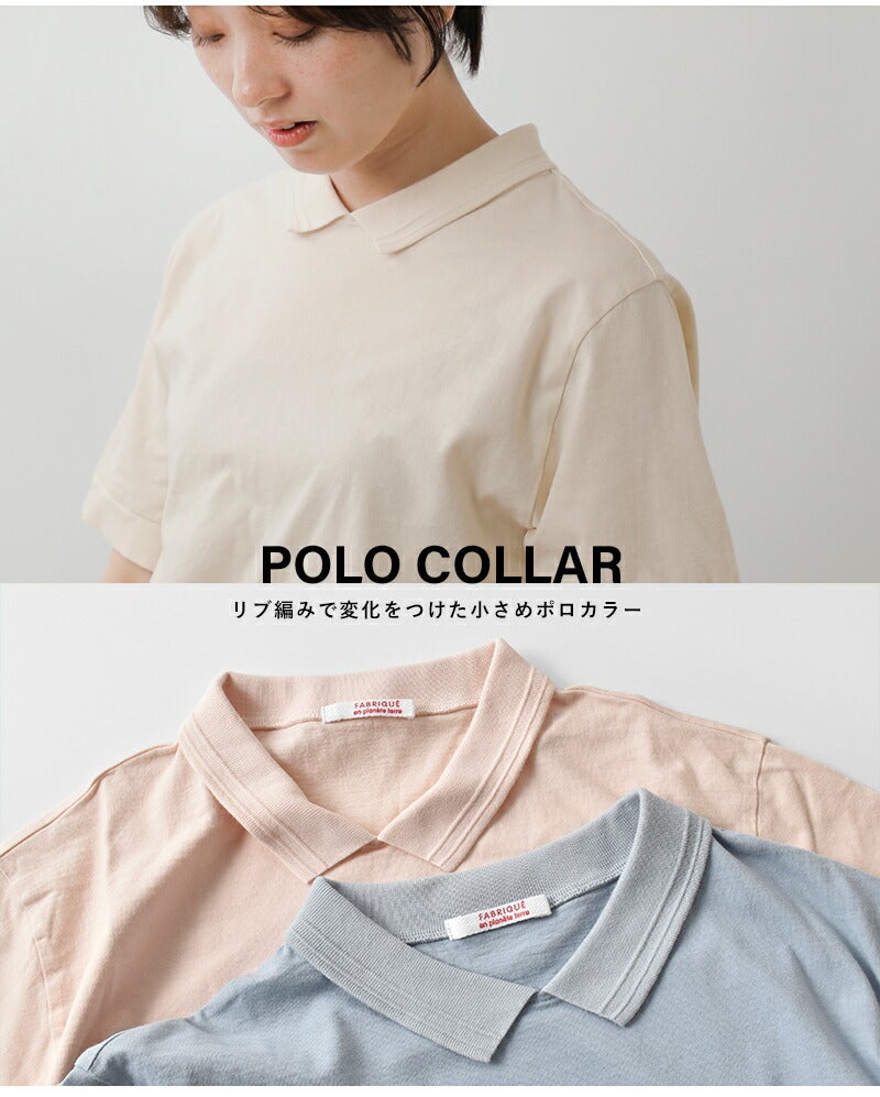 fabrique en planete terre(ファブリケ アン プラネテール)より、コットンショートスリーブポロTシャツのご紹介です。編みたてたプチ衿を付けたFABRIQUE新型のTシャツ。薄手の生地感なので重ね着やウエストインしてもごわつかず快適な着心地です。シンプルながらもきちんと感があり大人っぽく上品な印象の1枚です。