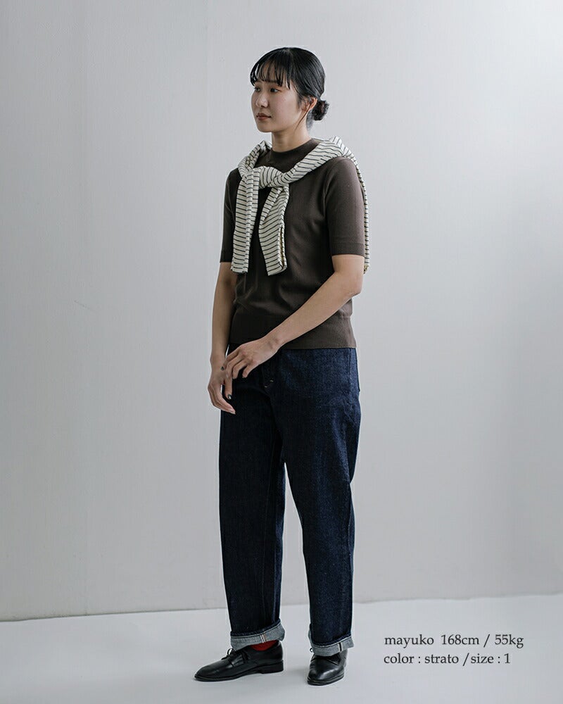 程よく身幅にゆとりを持たせたジャストフィットなバランスが秀逸です。レイヤードのインに持ってきたり、もたつきなくタックインスタイルもお楽しみいただけます。肩の縫い目を少し後ろにずらして正面からの見栄えもすっきり。