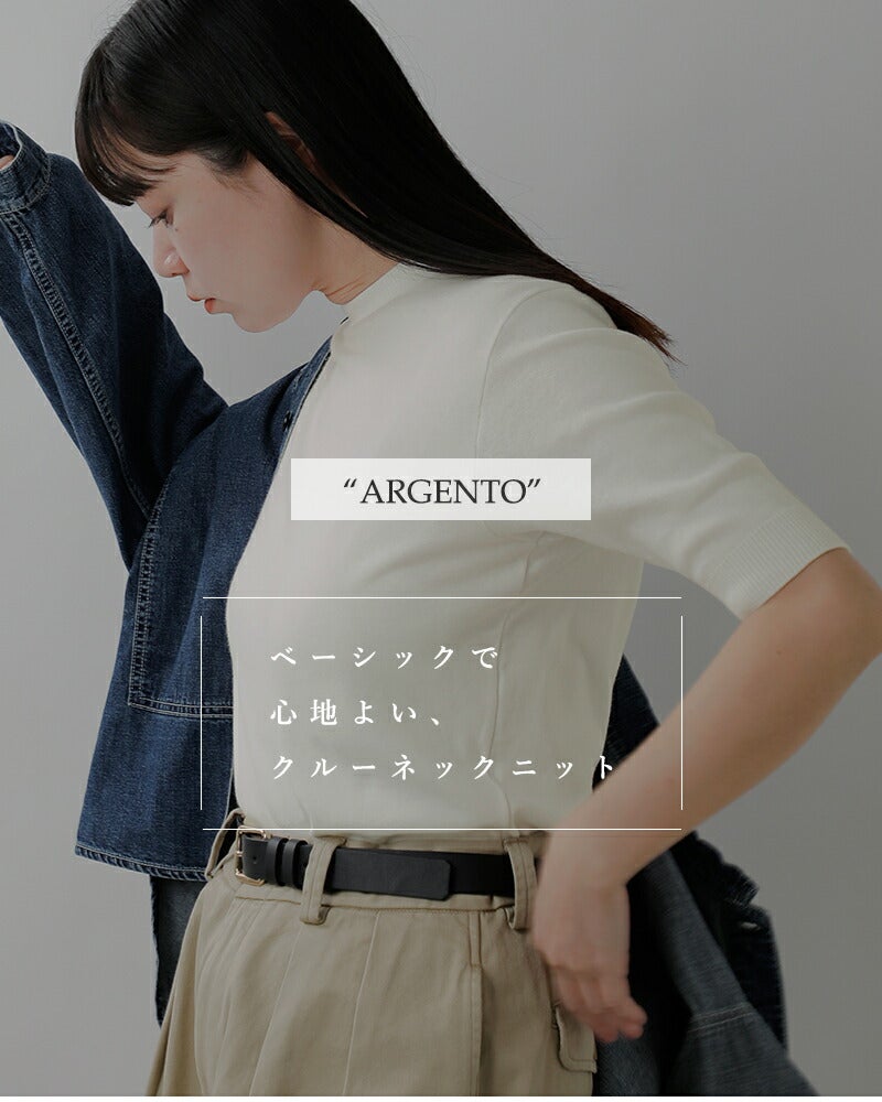 コトーネソフトコットンクルーネック5分袖ニットソープルオーバーARGENTO2620p