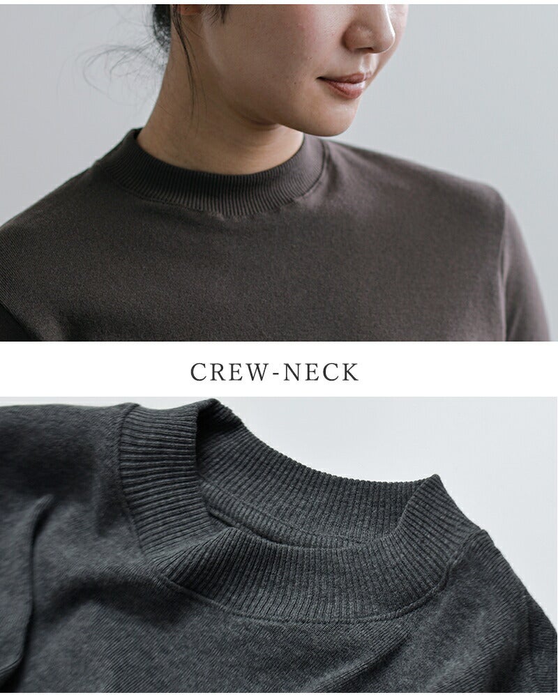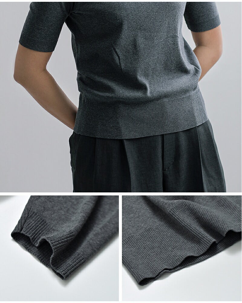 GICIPI(ジチピ)より、コットンクルーネック5分袖ニットソープルオーバー“ARGENTO”のご紹介です。程よいフィット感のシルエット、詰まったクルーネックになった5分袖ニットソー。袖と裾はシームレス2×2のリブでニットのような上品な印象に仕上げています。ジチピ定番素材のふんわり柔らかく心地よい着用感のCOTONE SOFTを使用。ストレスフリーに着ていただけます。