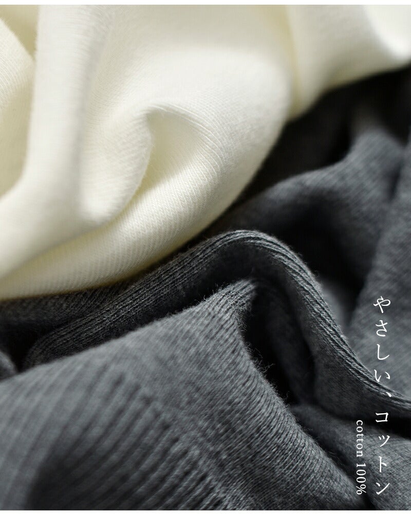 ジチピオリジナルのコットンニット”コトーネ・ソフト”を使用。コットン100%とは思えない柔らかな肌触りが特徴です。伸縮性もたっぷりとあり、動きやすくて快適です。軽くて優しい素材感が、一度着用すると病みつきになるような心地さ。生産工程で水通し・乾燥を行っているので製品の縮率がありません。ご家庭で気軽にお洗濯できる手軽さも魅力のひとつです。