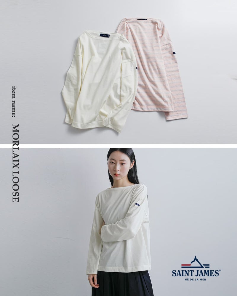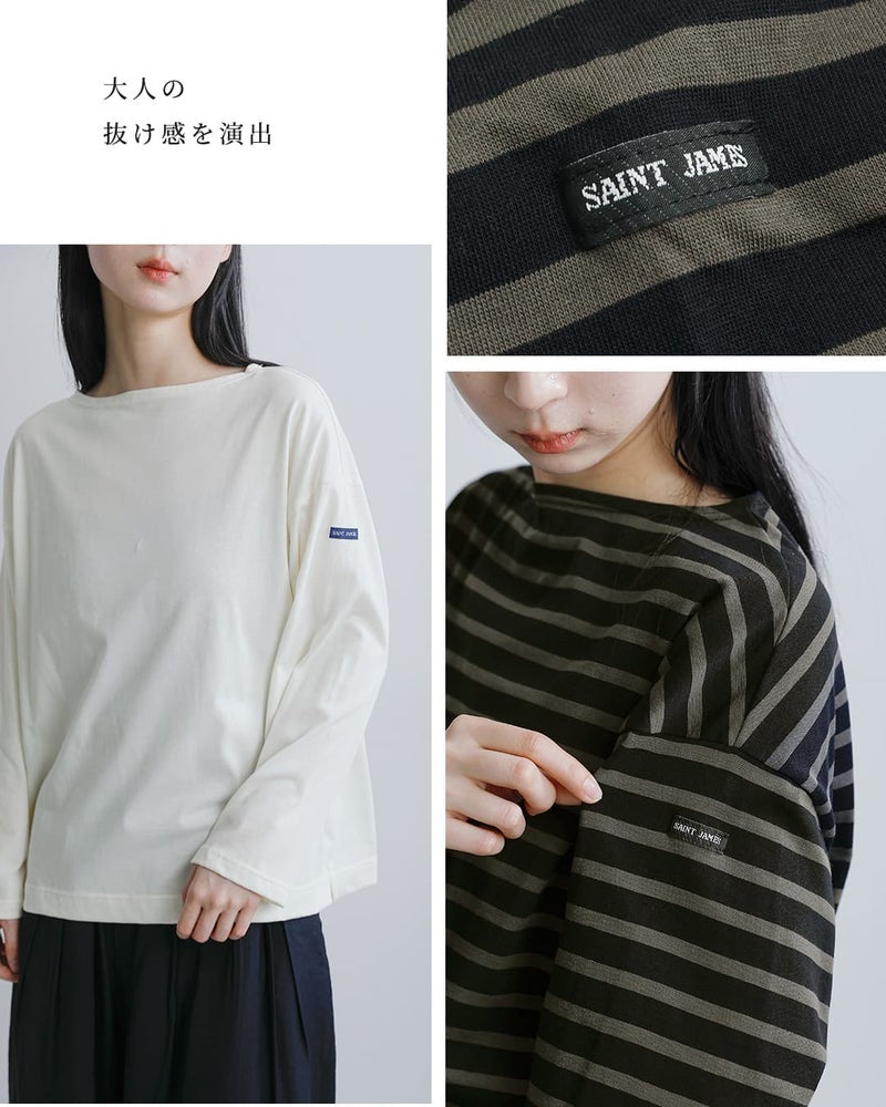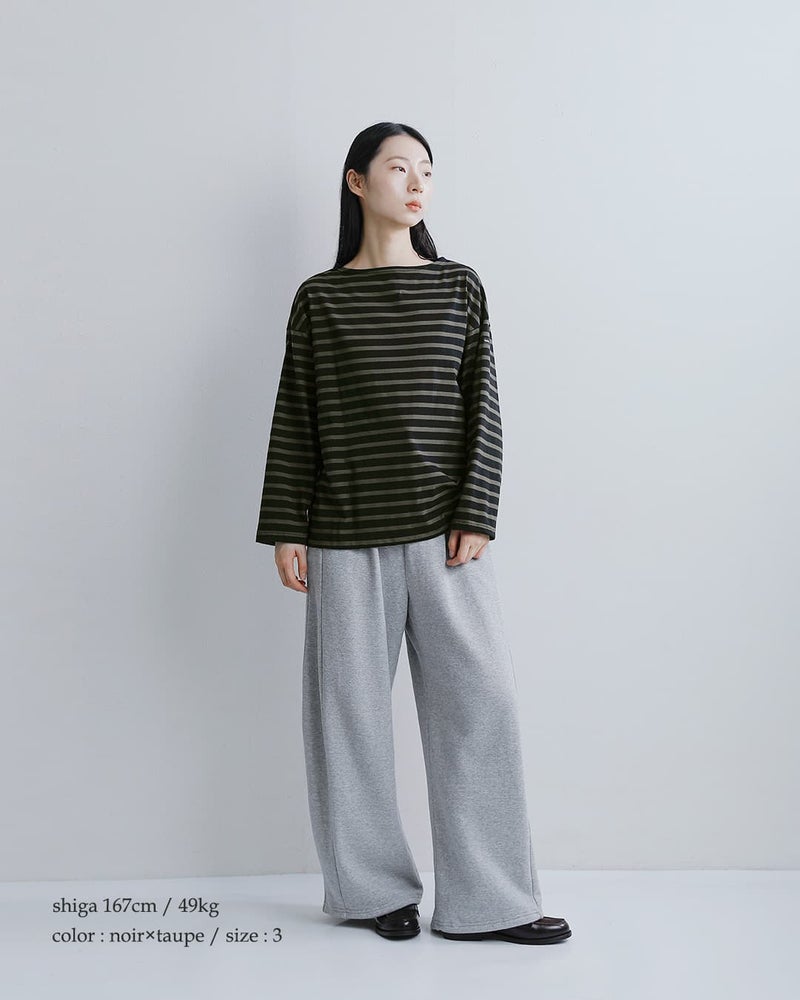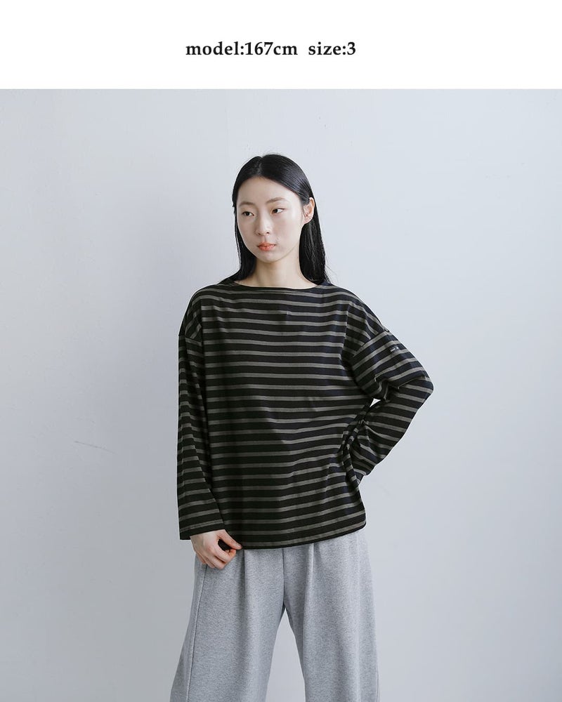 定番モデル「MORLAIX(モーレ)」をベースに、今風のドロップショルダーとワイドな身幅にアレンジした非常に人気のモデルです。カジュアルになりがちなボーダーも、この落ち感のあるシルエットなら上品な印象にまとまります。